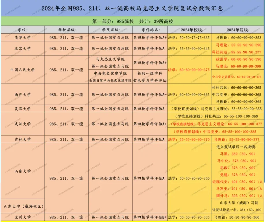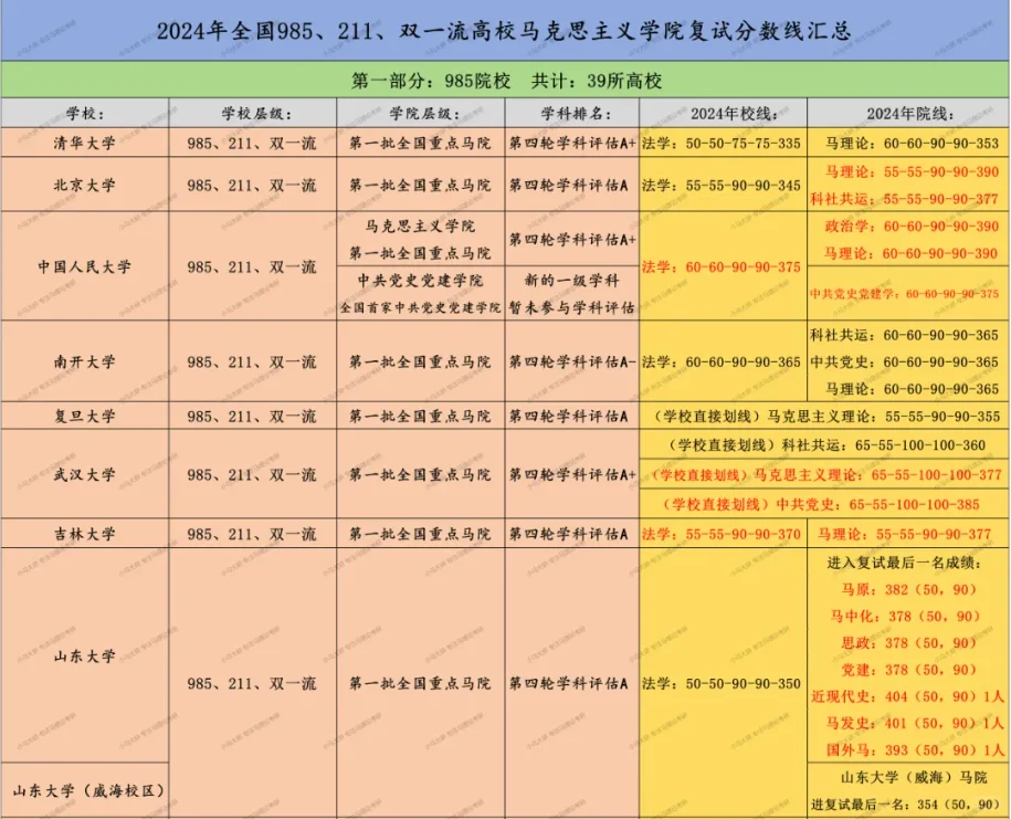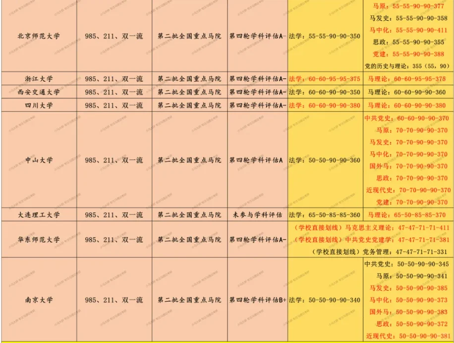 25马理论丨全国高校马院考研分数线情报汇总