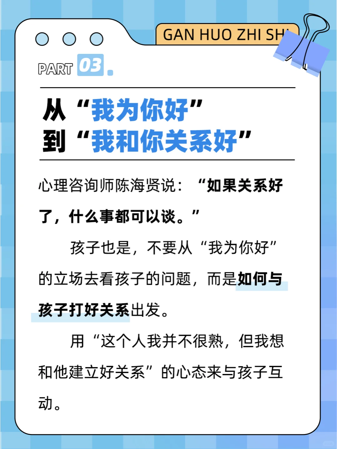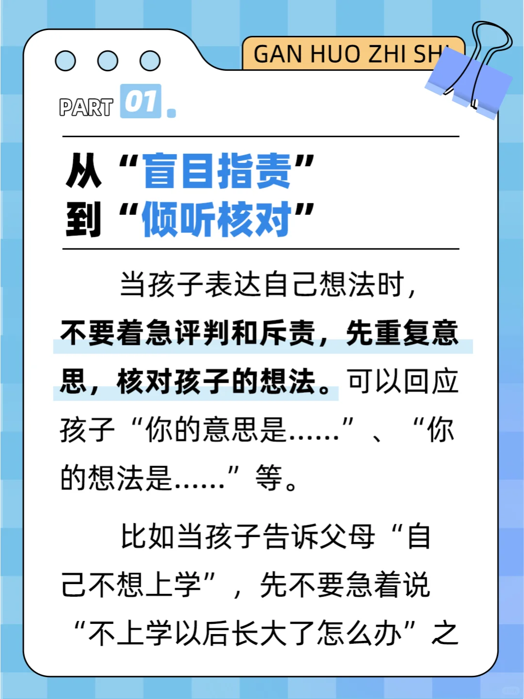 1️⃣从“盲目指责”到“倾听核对”👂 2️⃣从“爱你在心”到“让你感受到我的爱”❤️ 3️⃣从“我为你好”到“我和你关系好”👨👩👧👦