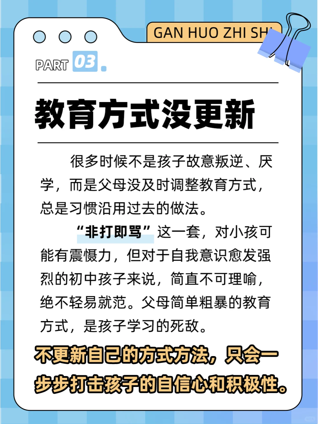人们总说,孩子一路的成长,是父母这辈子最大的修行。🌱 的确,每一个优秀的孩子,背后都站着用心、认真、睿智的父母。👨👩👧👦 不管孩子此时此刻处在哪个阶段,对父母来说,都是需要学习、接受挑战的重要关卡。🎯 初中生和家长在一开始就要避开这三个大坑: 1️⃣ 学习状态没摆好📚 2️⃣ 学科基础没打牢🔨 3️⃣ 教育方式没更新🔄 父母懂得未雨绸缪,和孩子站在一起直面问题、解决问题,相信孩子一定能在满满的安全感里,稳稳当当地走向人生下一个阶段。🌈💪