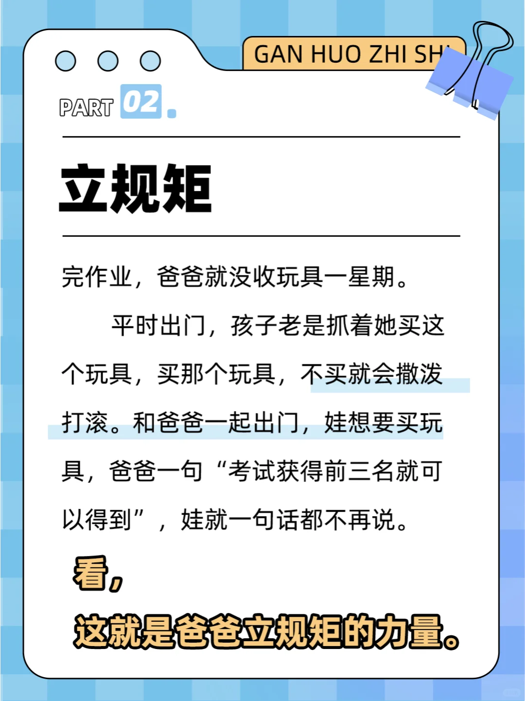 爸爸只需要告诉孩子什么是社会的规则、家庭的规矩,就能收获一个明事理、懂是非、守规则的孩子,轻松培养孩子的责任感与独立性📚。