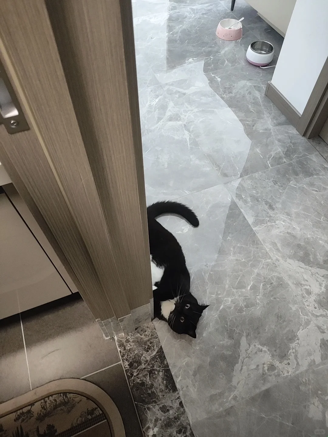 别的小猫都是站着探头,你家这个怎么直接躺了