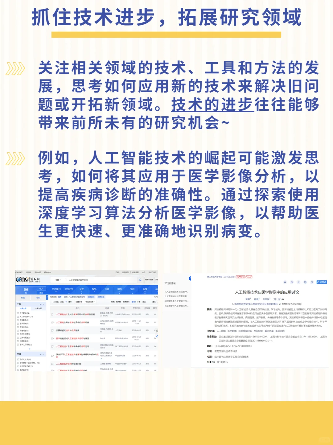 关注相关领域的技术、工具和方法的发展,思考如何应用新的技术来解决旧问题或开拓新领域。技术的进步往往能够带来前所未有的研究机会~