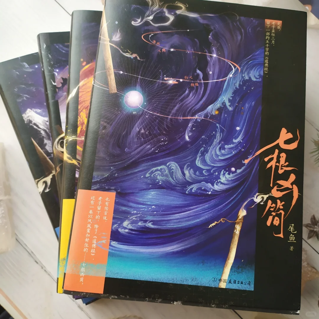 作者尾鱼的创作总会带有一些灵异色彩的奇幻悬疑,除了其独特的情节设计外,我想她的故事最主要的还是依托丰富的文化背景。读过他的作品,除了这套《七根凶简》之外,也就是看过影视剧《西出玉门》了。《七根凶简》的故事就是以老子的《道德经》和他遗留的“七根凶简”为背景,传说老子在退隐时留下了这两样东西,其中七根凶简被凤凰鸾扣封住,具有一种不详的力量。《西出玉门》从书名中就可以看出作者对唐诗的演化应用。当然作者小说中最大特色还是自己营造的那种超自然的一种想象,从而给读者带来一种,未曾有过的,但又紧贴 文化传统的不一样的另类悬疑和惊悚。
