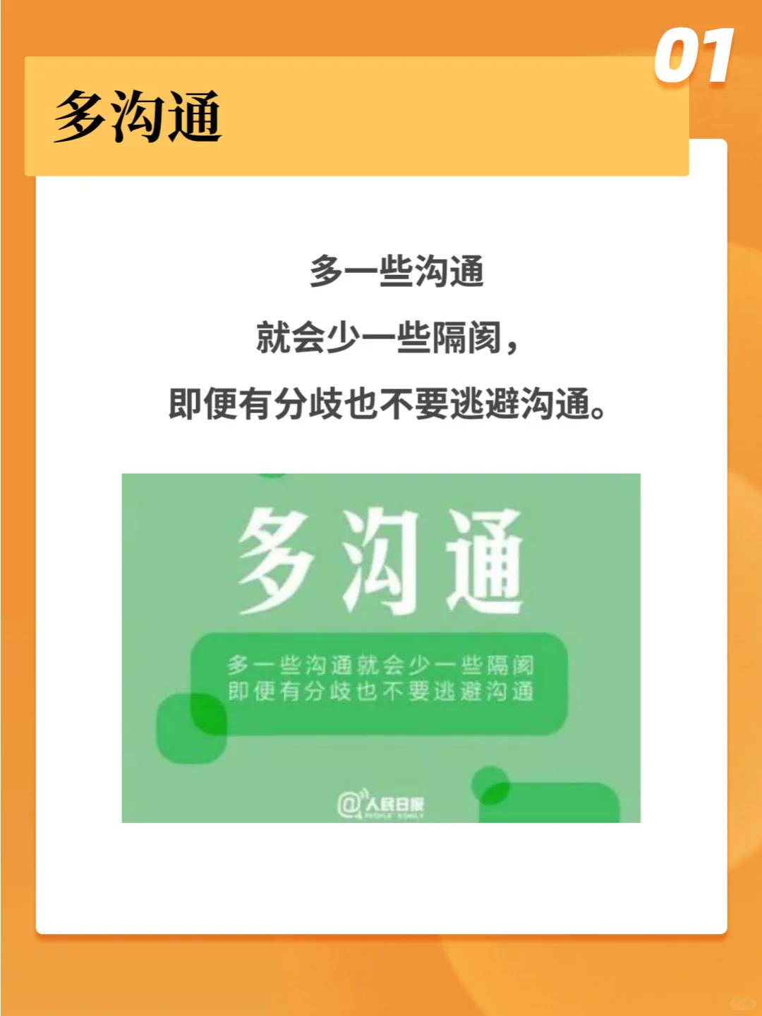1️⃣多沟通💬 2️⃣多陪伴👫 3️⃣多倾听👂 4️⃣多体谅💓 5️⃣多耐心⏳ 6️⃣多包容🤗 7️⃣多珍惜💎 8️⃣多关心💡 9️⃣多感恩🙏
