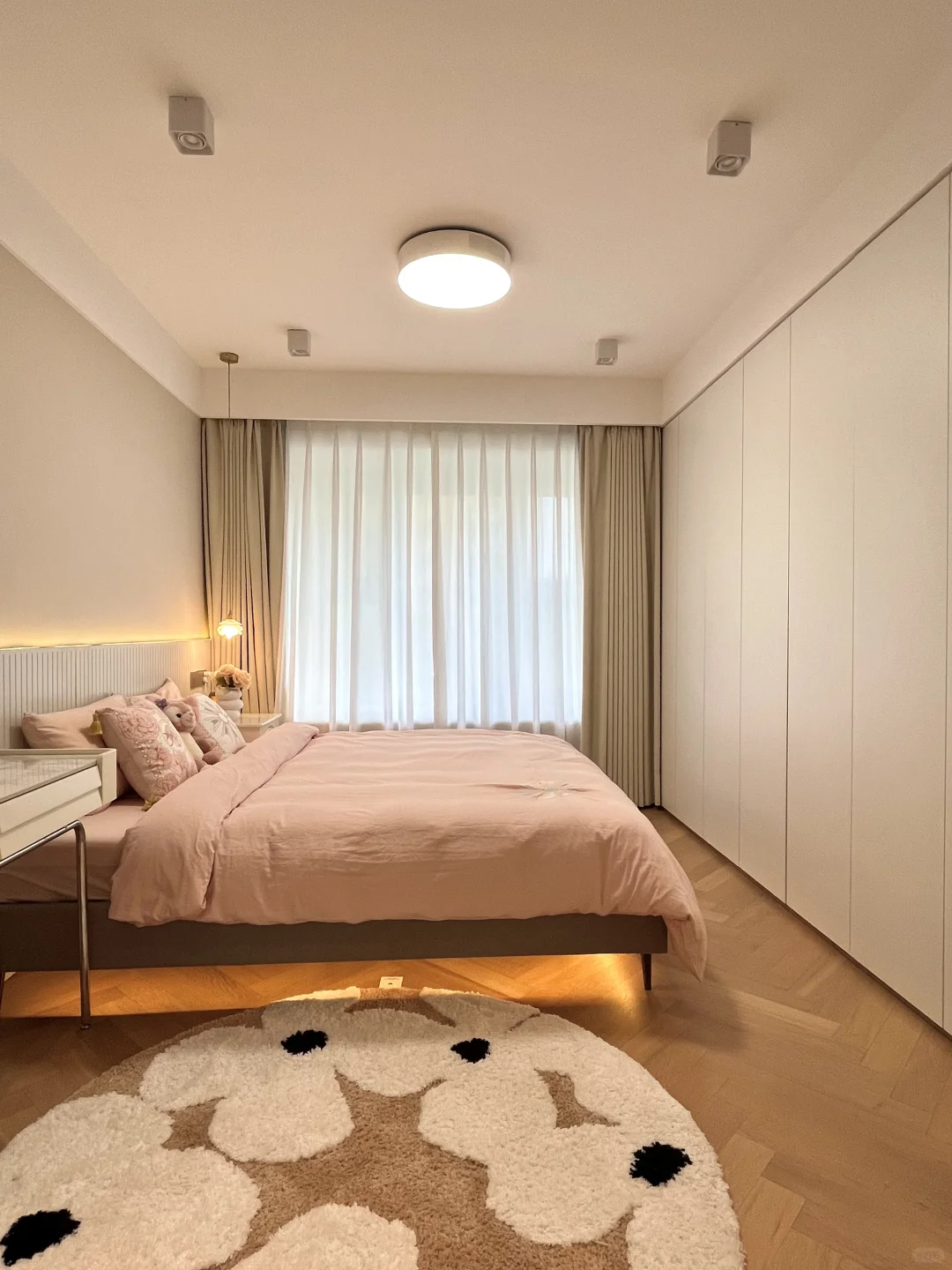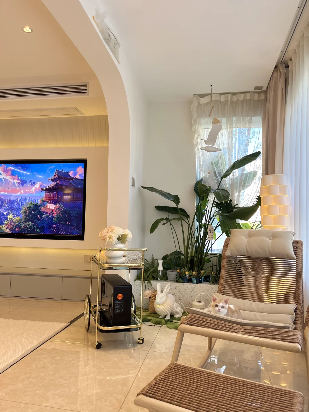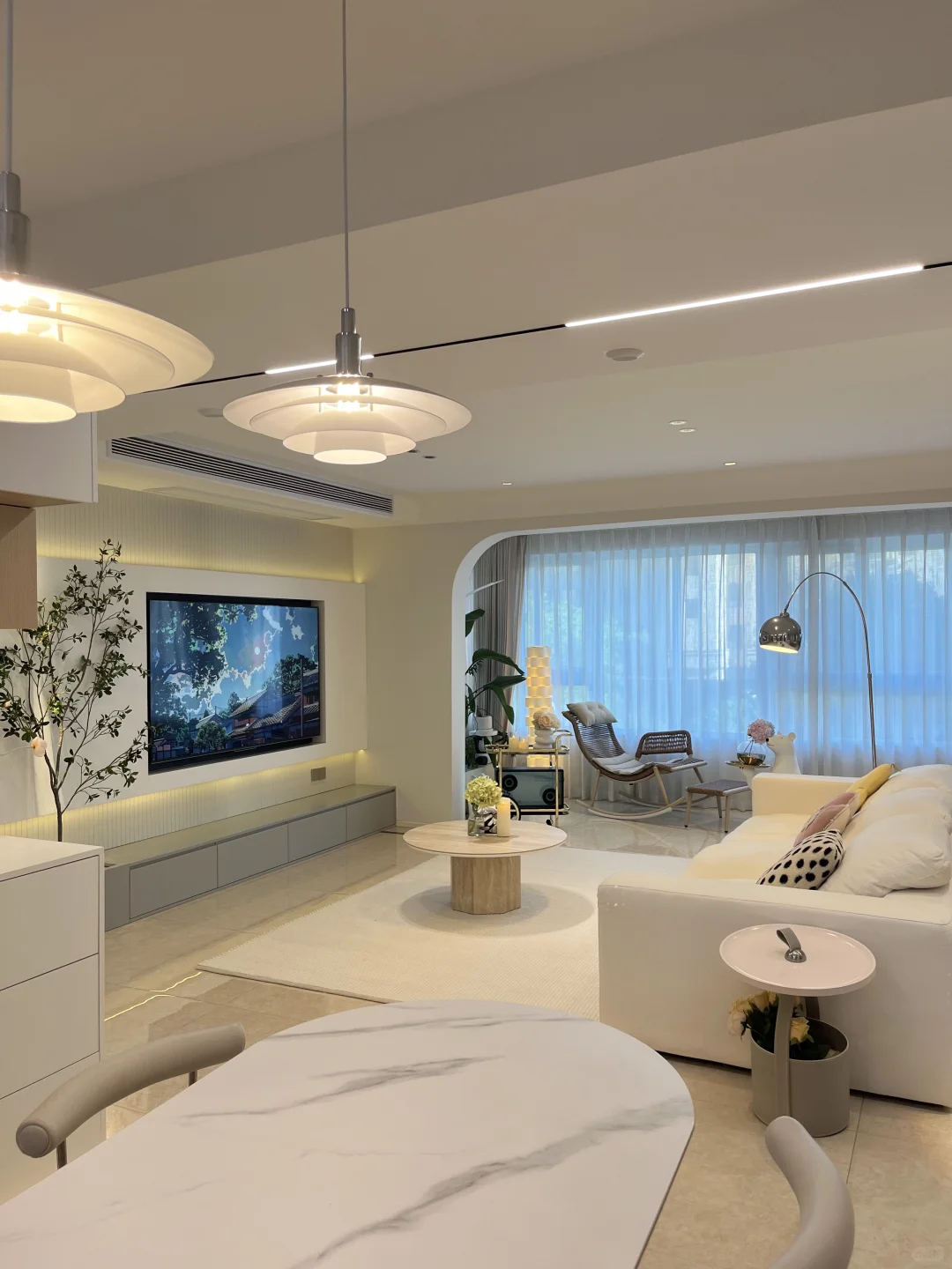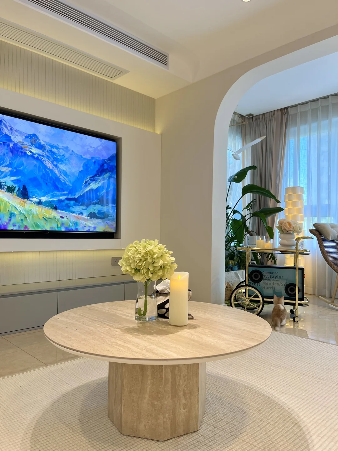 是的,就是我家啦! 当初装修的时候,自己设计,边刷边装修! 终于装出了理想中的房子! 套内120平,建筑140平 精装修改造 装修是极简风和奶油风的组合 简单耐看 真的好喜欢啊!