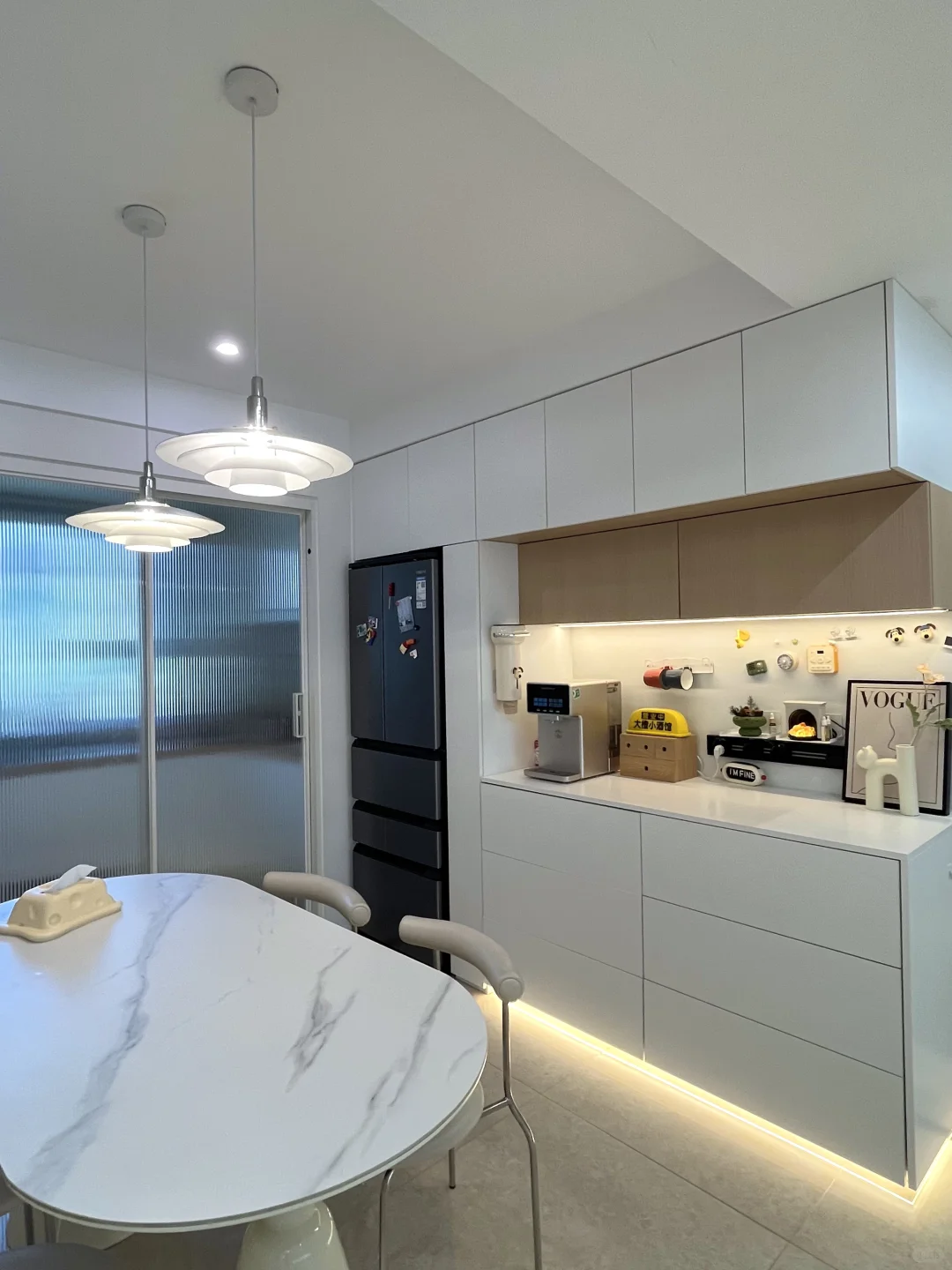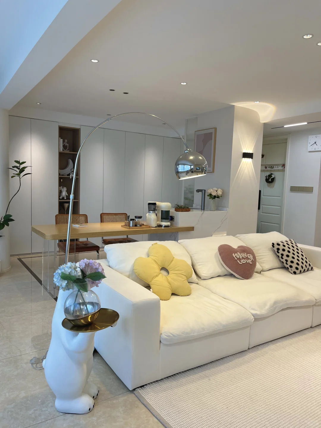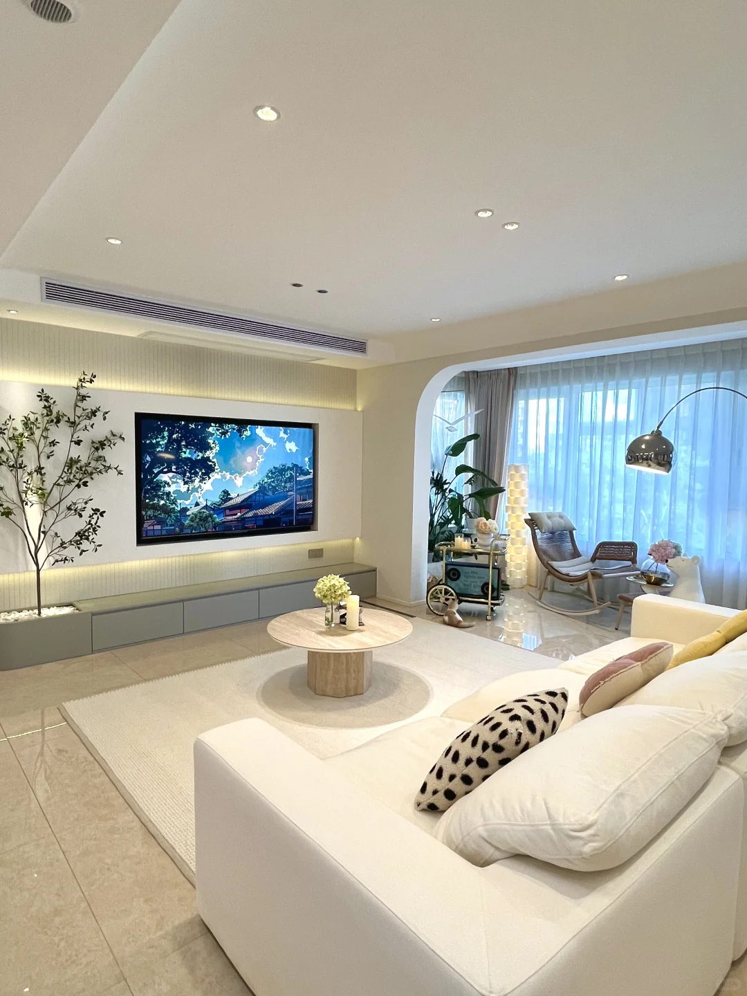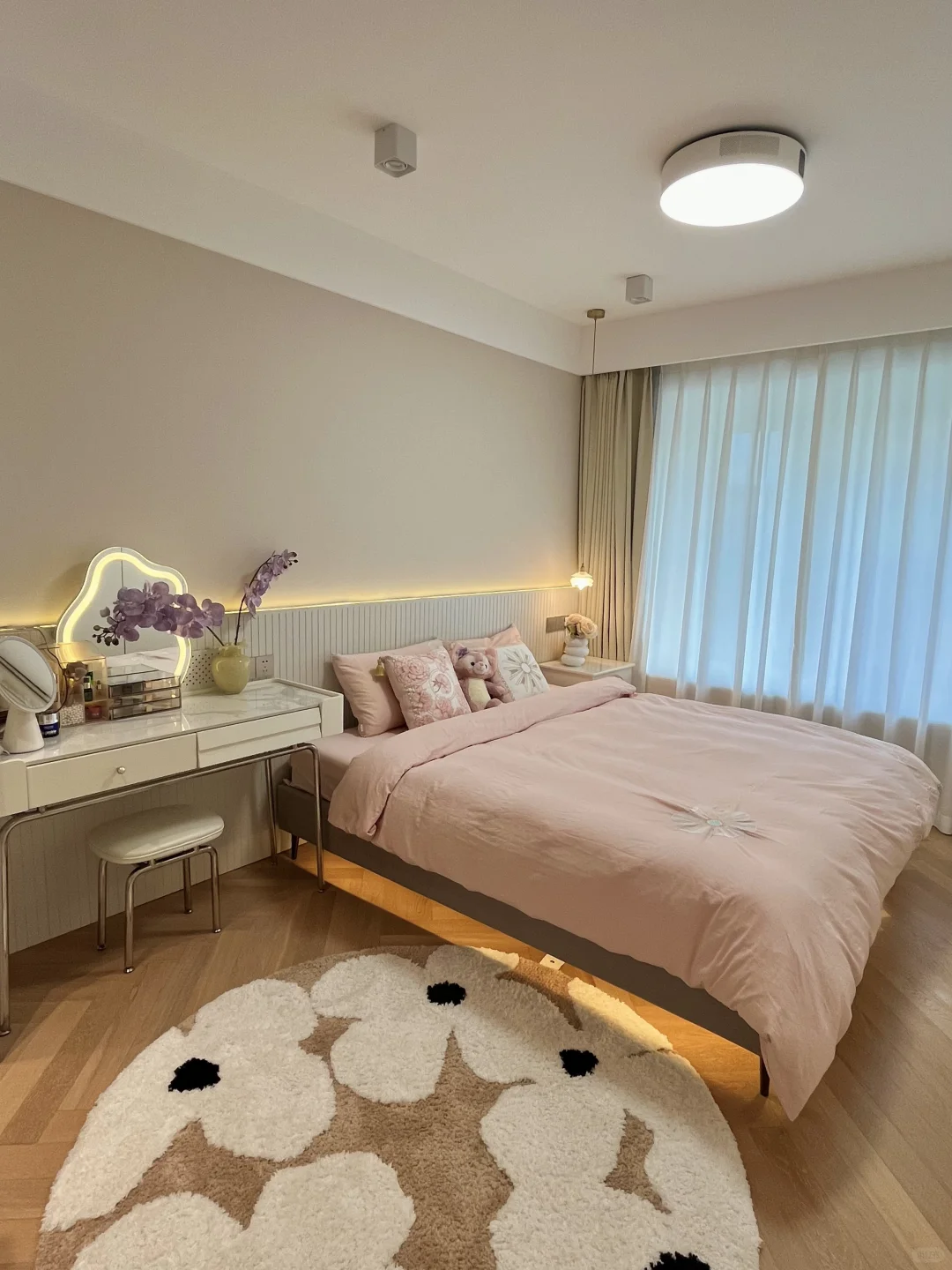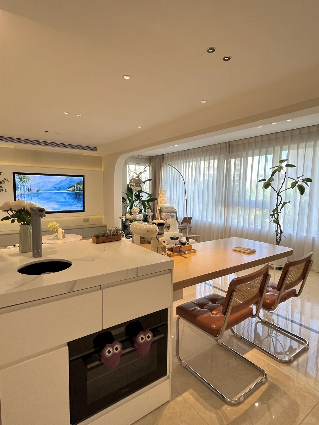 是的,就是我家啦! 当初装修的时候,自己设计,边刷边装修! 终于装出了理想中的房子! 套内120平,建筑140平 精装修改造 装修是极简风和奶油风的组合 简单耐看 真的好喜欢啊!