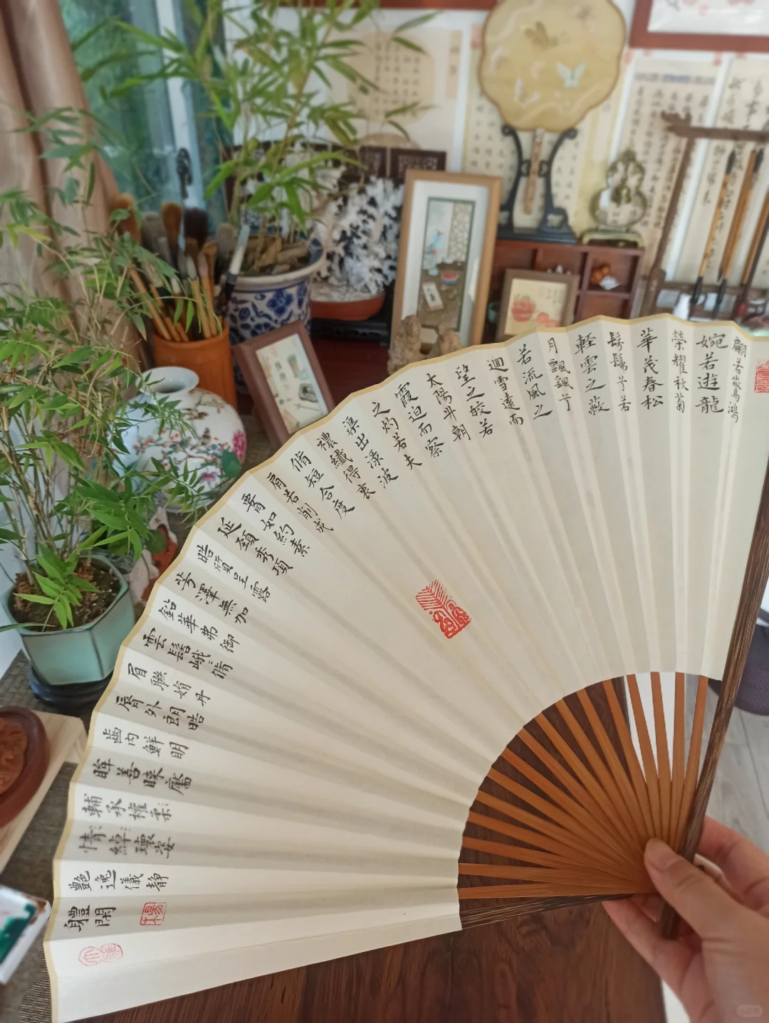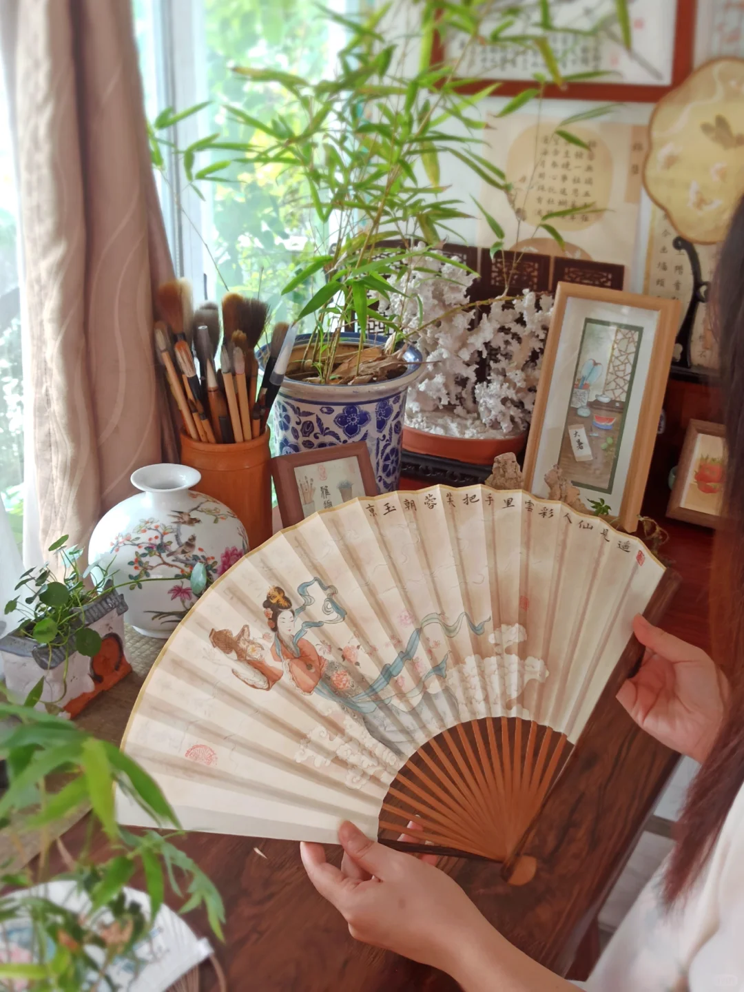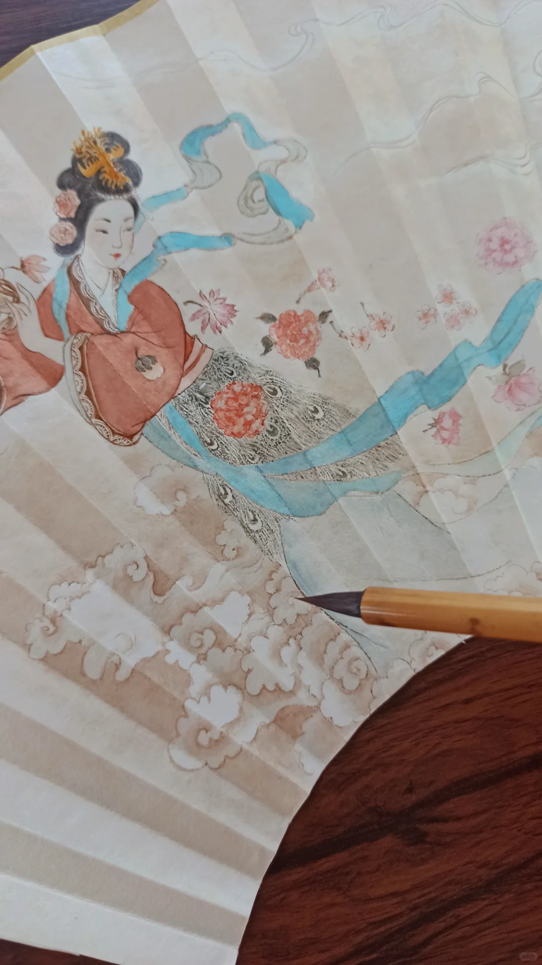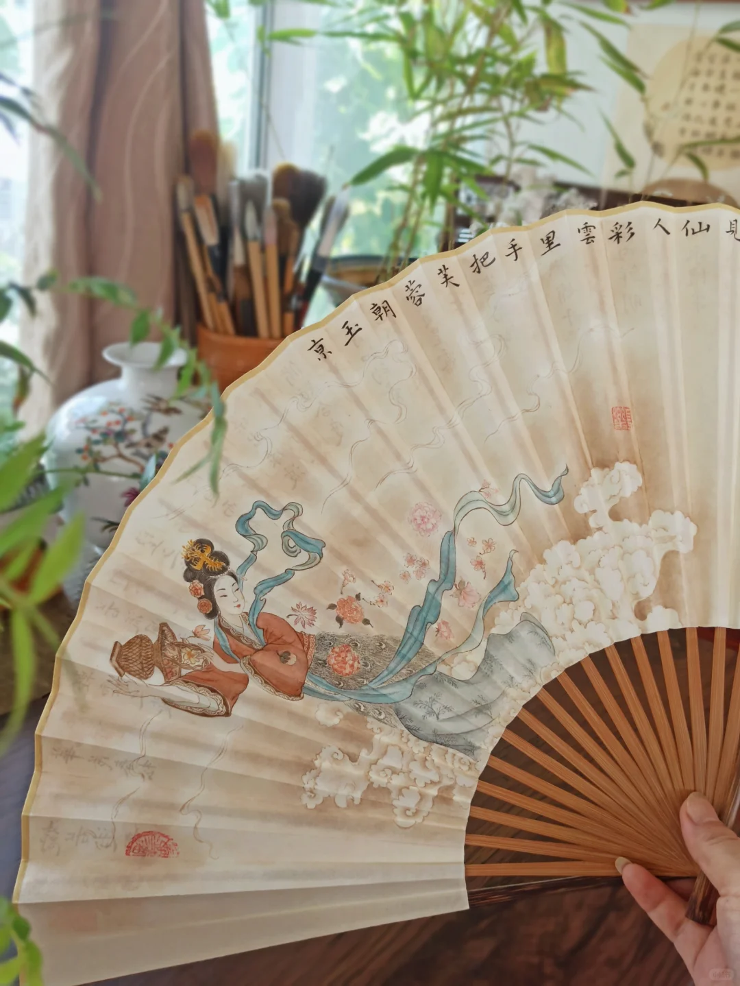 去年就想给自己画把扇子 一直没想好画什么 今年终于下手了 一面画的瑶池仙女 一面写的洛神赋选段 仙气飘飘的扇子 正好适合仙女[偷笑R]