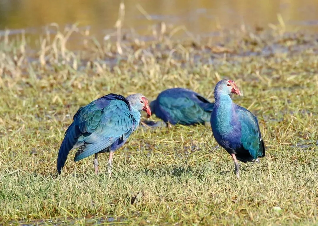 🍀栖息环境:紫水鸡栖息于有水生植物的淡水或咸水湖泊、河流、池塘、水坝、漫滩或沼泽地中,也见于城镇的湖泊、河流中的绿洲,并扩展到与湿地相邻的栖息地如草地、农田、公园、路边绿化带和森林边缘,其垂直分布可从海平面到1400米。栖息地的湿地面积通常很大,而且是永久性的,有时也生活在小片水域。