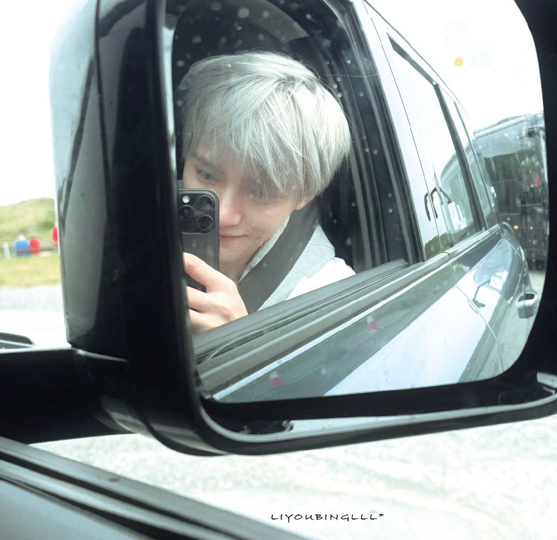 #周翊然银发对镜拍# 周翊然今日look🈶银发➕灰色帽衫妥妥的美式男孩!#周翊
