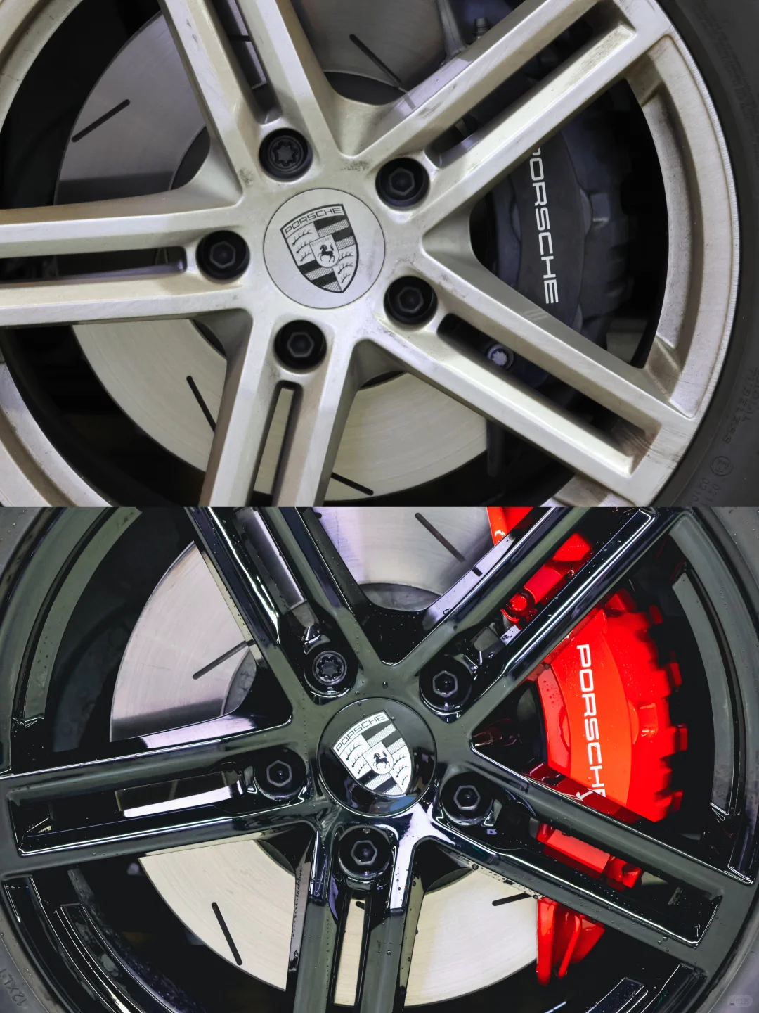 新款保时捷帕拉梅拉改色 轮毂改色亮黑🖤 原厂静电粉末工艺烤漆,区别市面普通油漆烤漆效果质感 卡钳改色竞速红❤️ 经典颜色绝对的耐看~ [彩虹R][向右R]喜欢追求高品质细节的小伙伴赶快安排起来‼️整个车气质颜值上升一大截,而且当天几小时完工,带质保