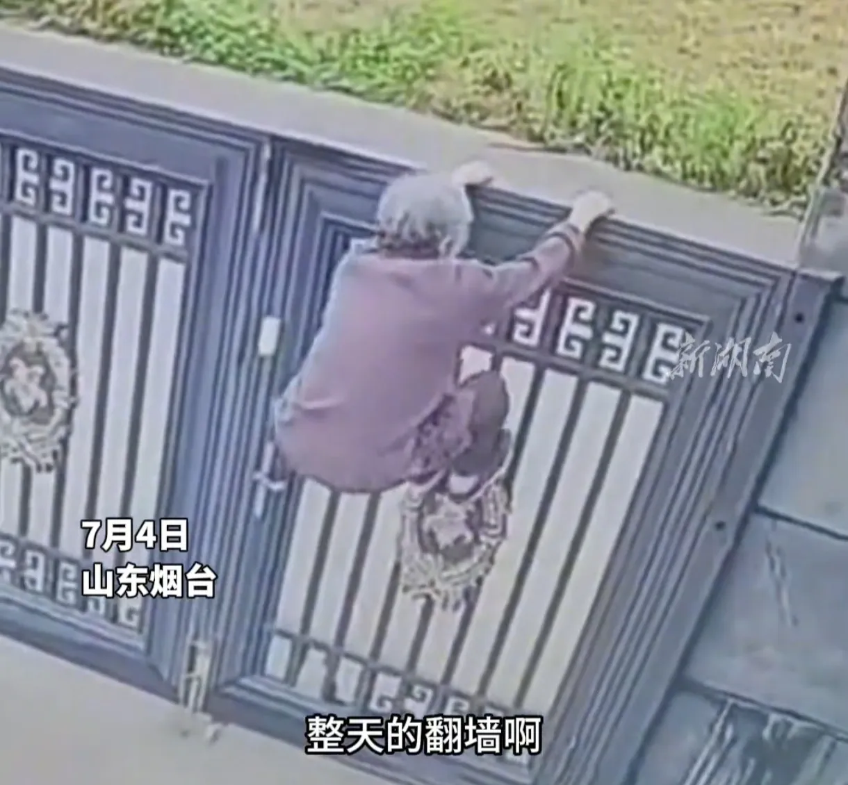 现场目击者说,老奶奶一跃而上,双手抓墙,双腿一蹬,嗖的一下就翻过去了,比年轻人还利索!