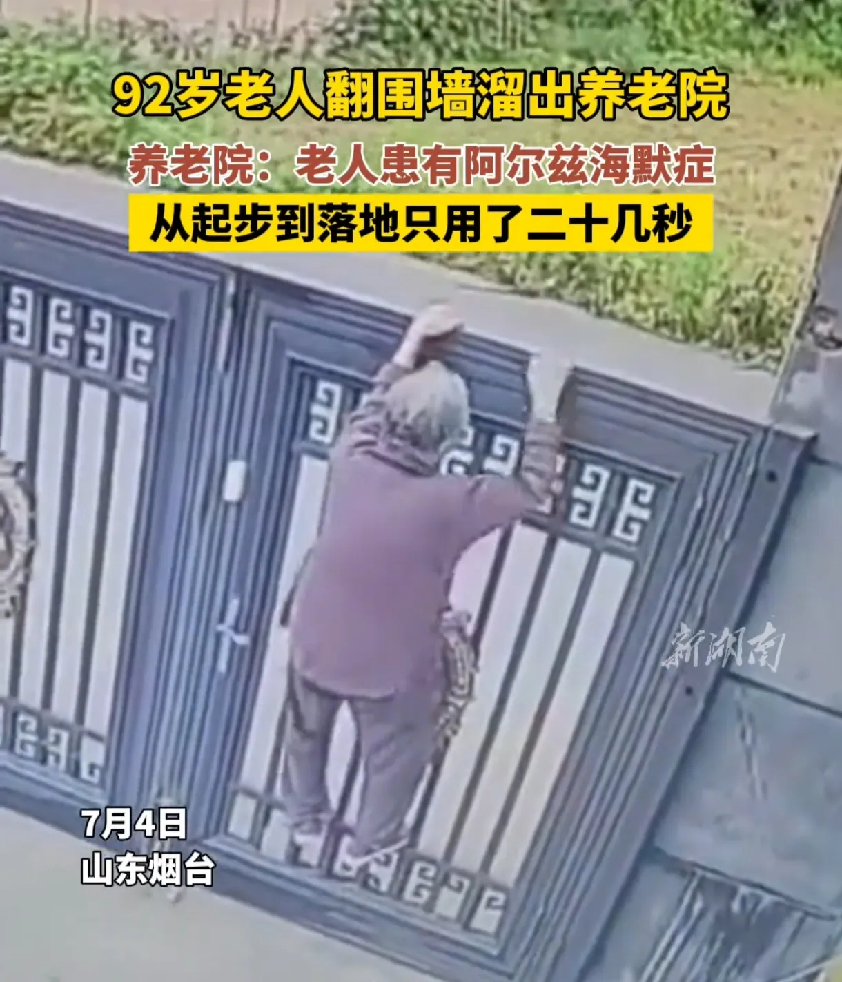 92岁老人翻墙出养老院,二十秒跃动青春!