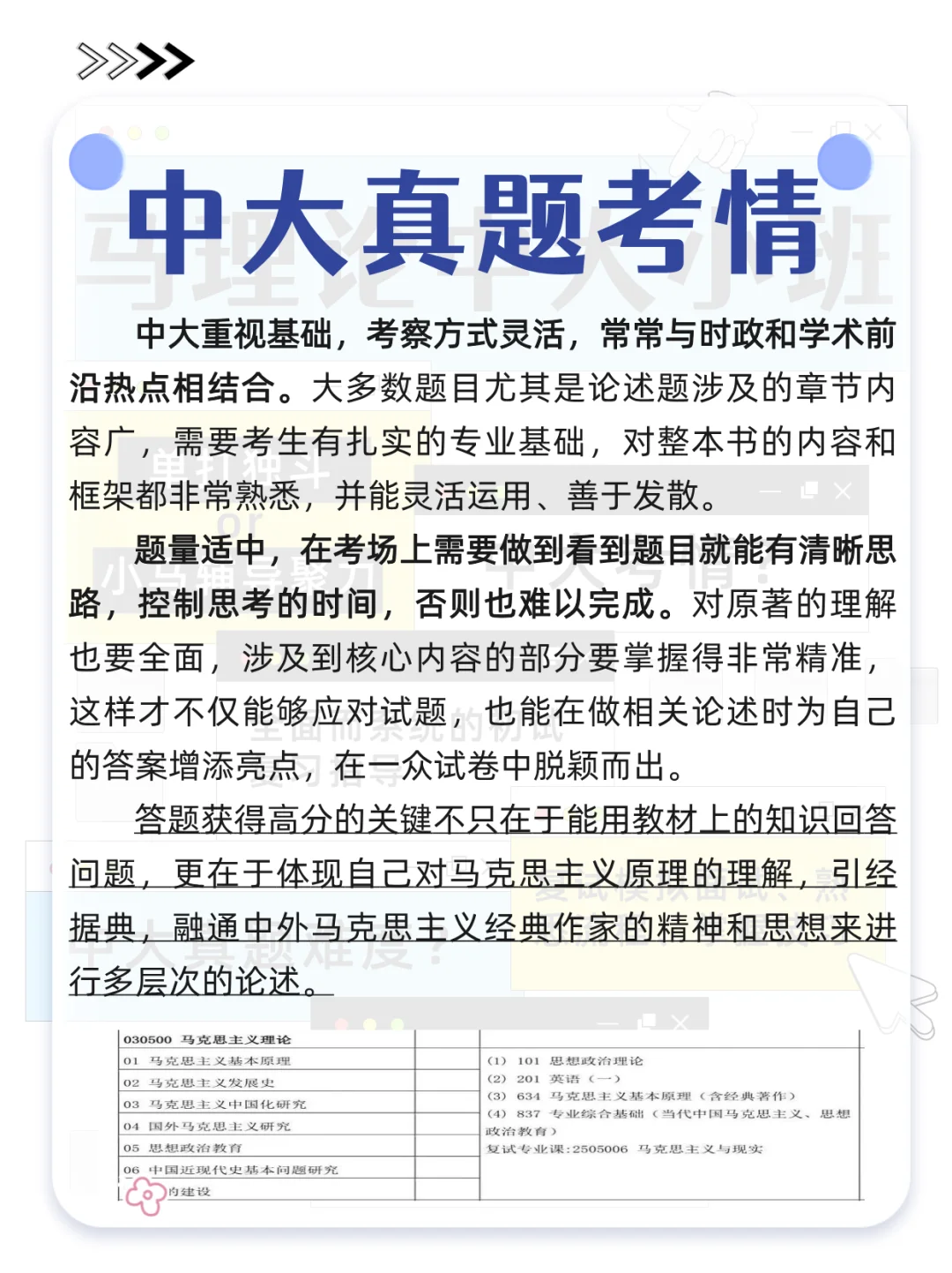 想要上岸中大,不仅要能用教材上的知识回答问题,更要体现自己对马克思主义原理的理解,引经据典,融通中外马克思主义经典作家的精神和思想来进行多层次的论述。
