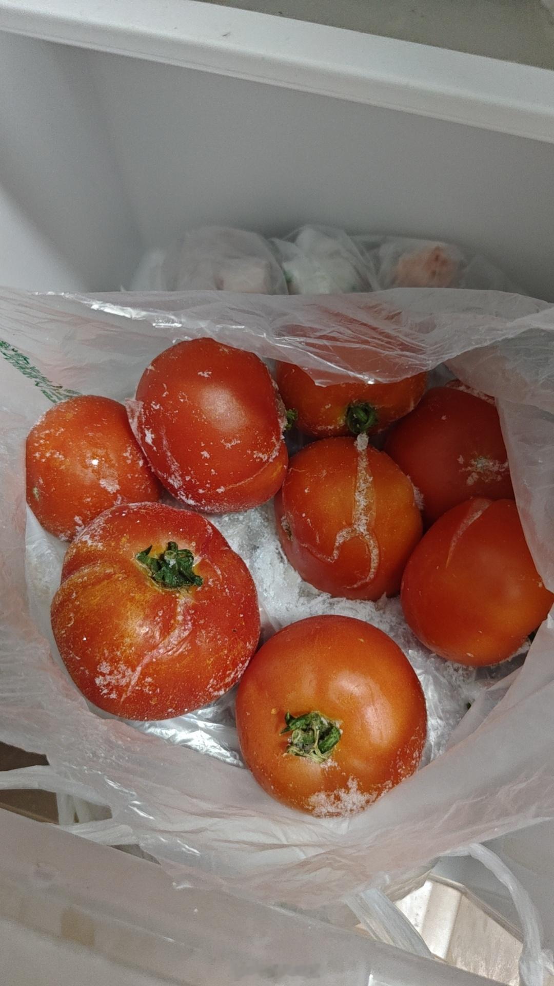 新疆小伙伴告诉我这个西红柿要多囤,在新疆他们都有一台冰箱专门冻西红柿和玉米。还告诉我冷冻番茄怎么吃。
