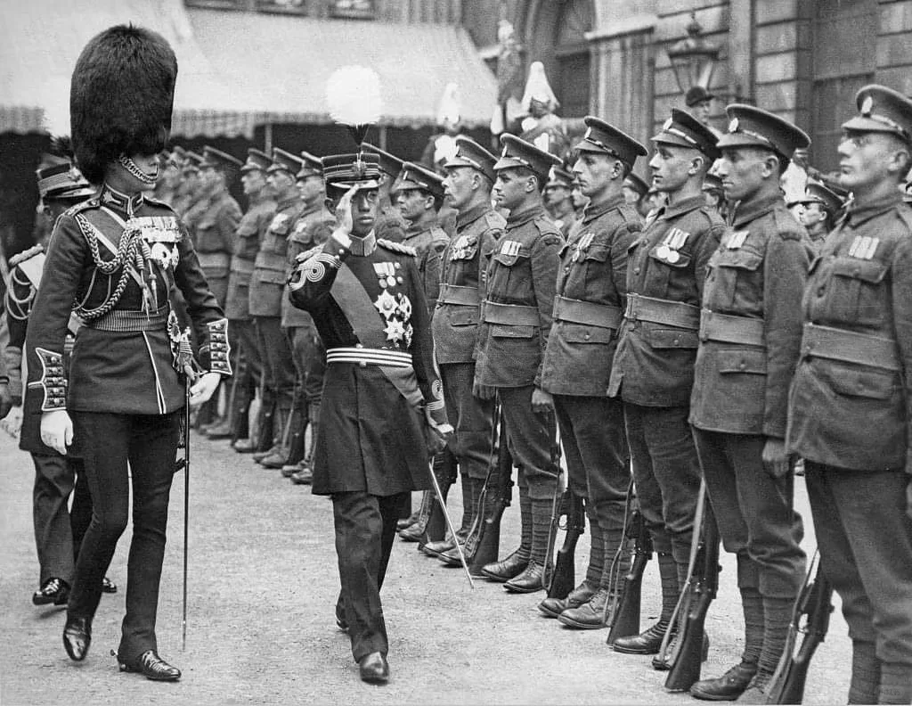 1921年5月,日本裕仁皇太子在为期 6 个月的欧洲之旅中访问英国伦敦,期间视察了英国仪仗队。明治时期,日本基本把英式海军学院复制到日本,聘请英国教官,学院风格采取英系,用英文授课。