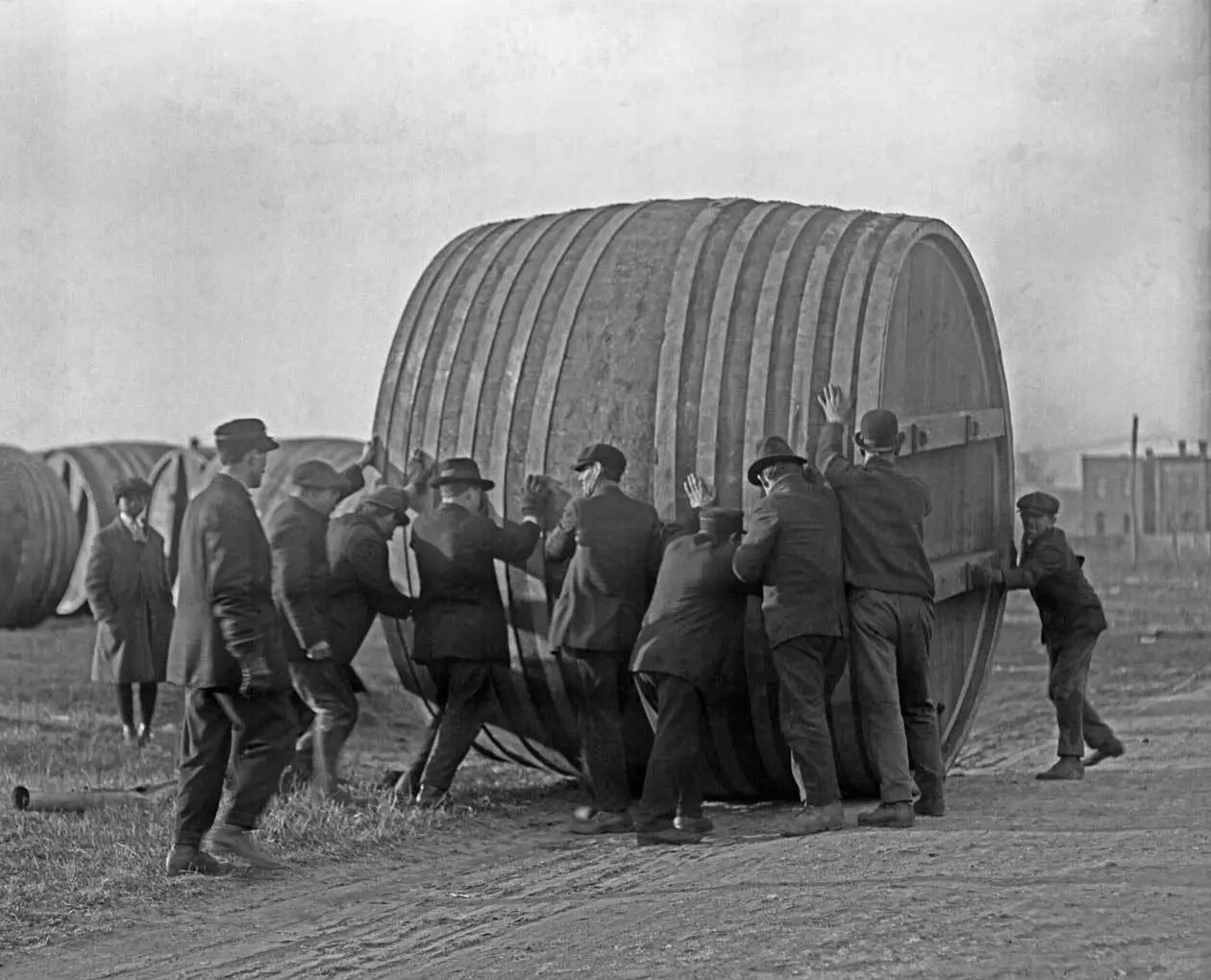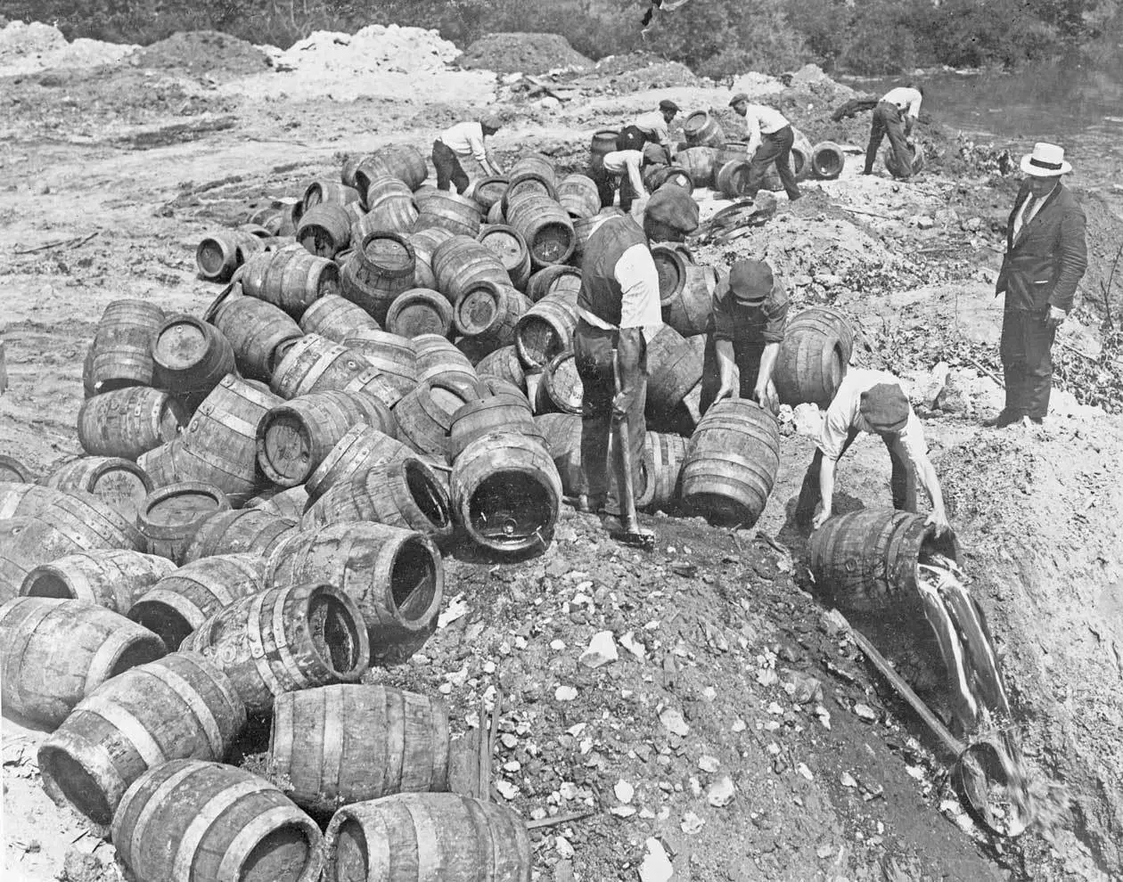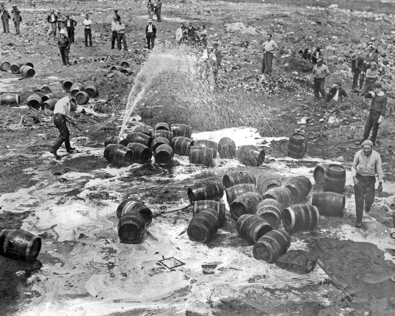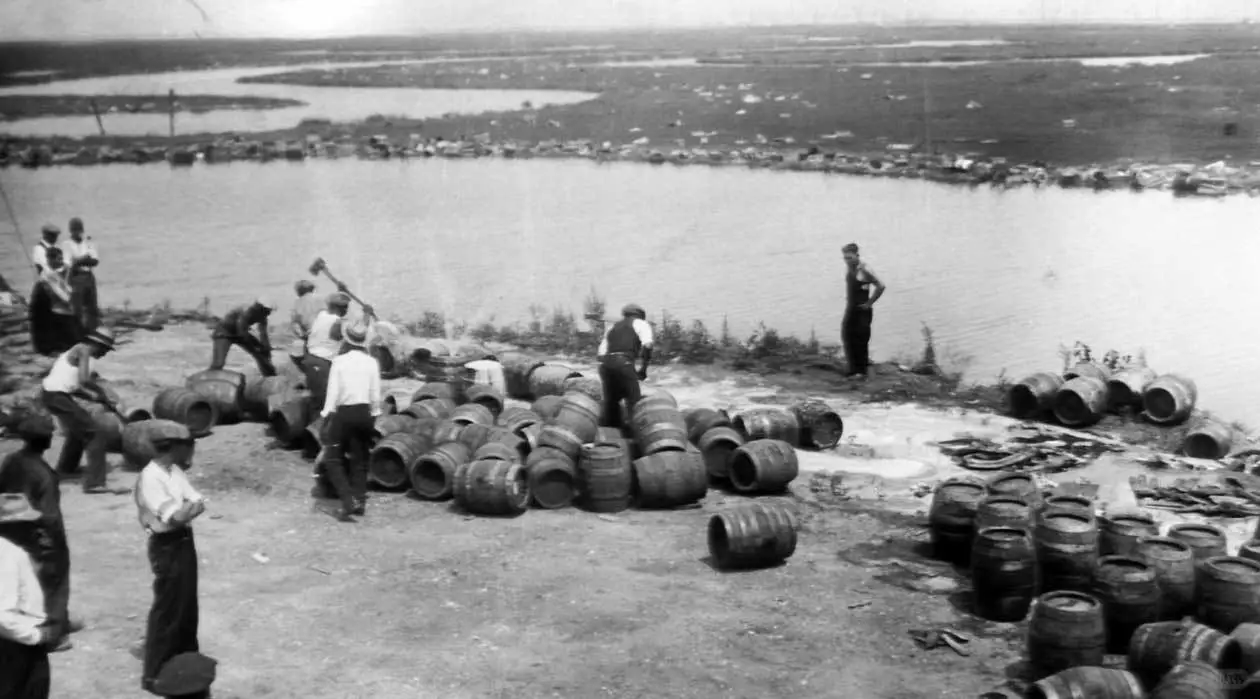 20年代,美国禁酒令期间,被警方查获和销毁的酒 。