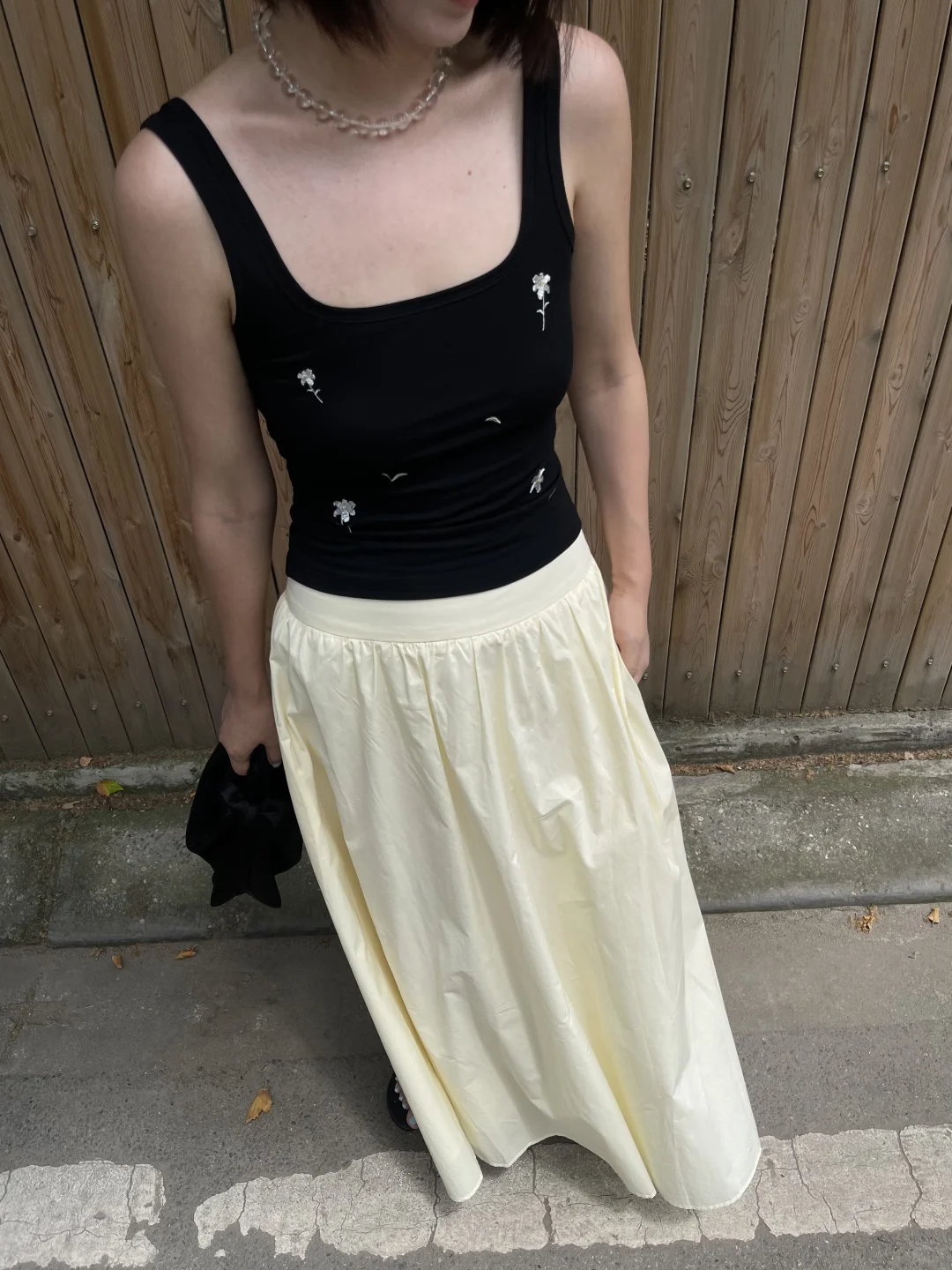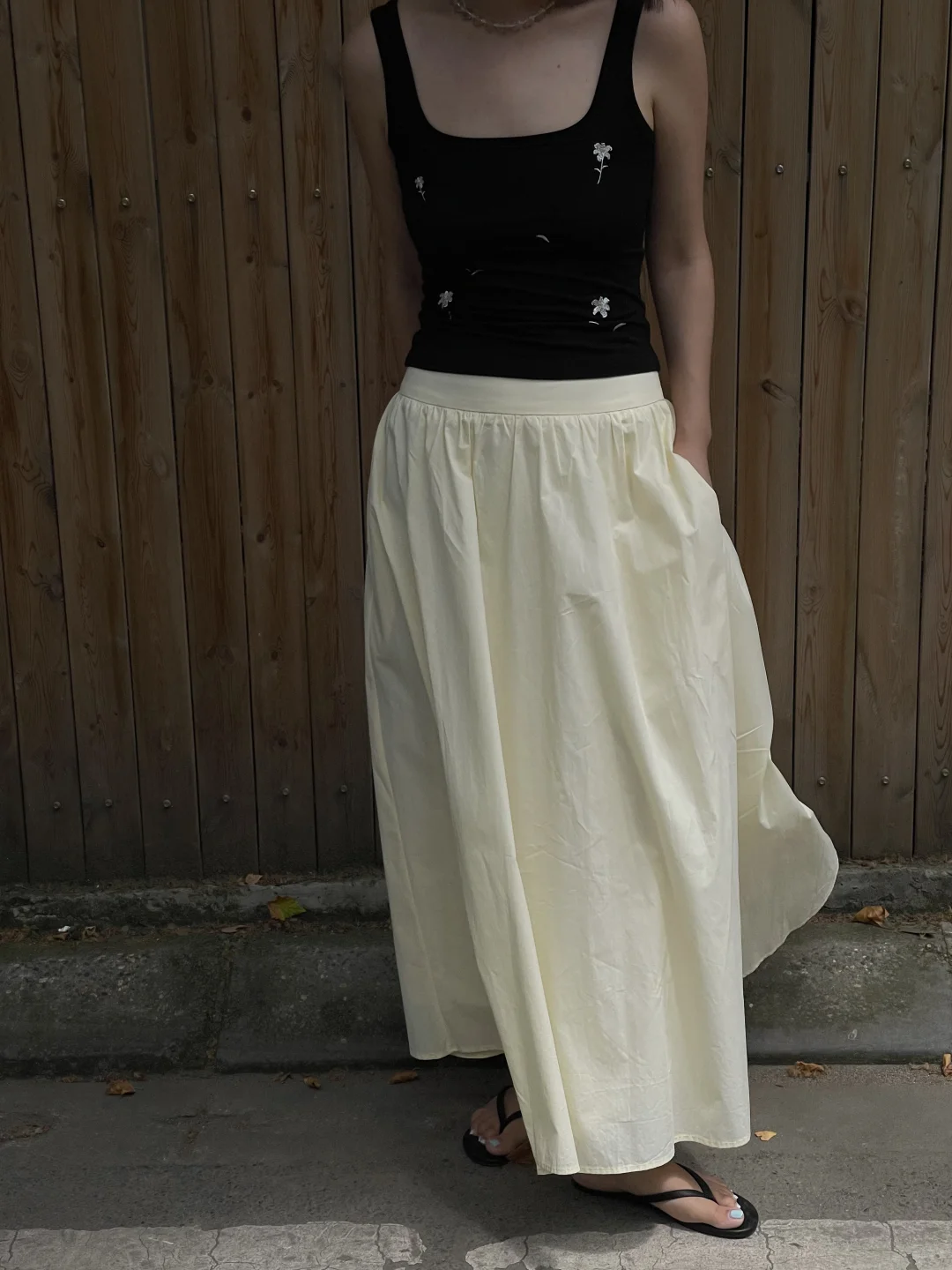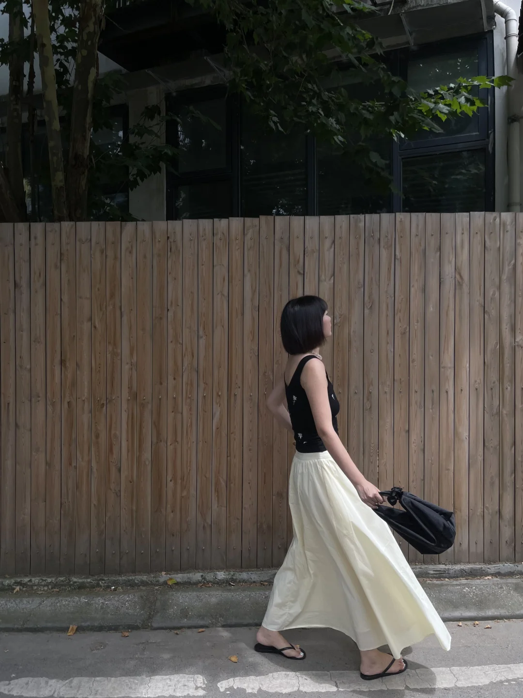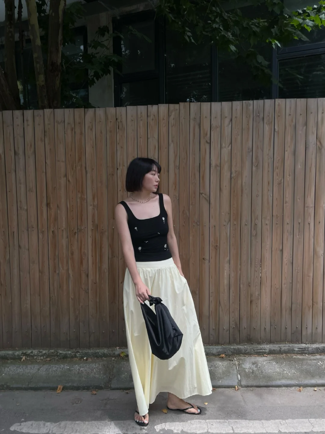夏天在自然公园里,穿白色背心搭配黄色牛仔裤,妥妥就是甜美少女本女。白色背心清爽又