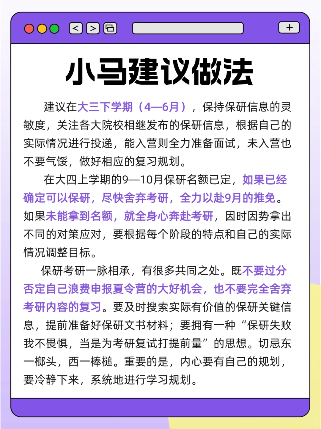 近来,关于“考研”“保研”“留学”“工作”,同学们纠结不定,而对于“考研”“保研”更是焦虑。这道看起来非A即B的单选题,我们的确要对它或主动或被动地作出最后的选择。[哭惹R][哭惹R][哭惹R]