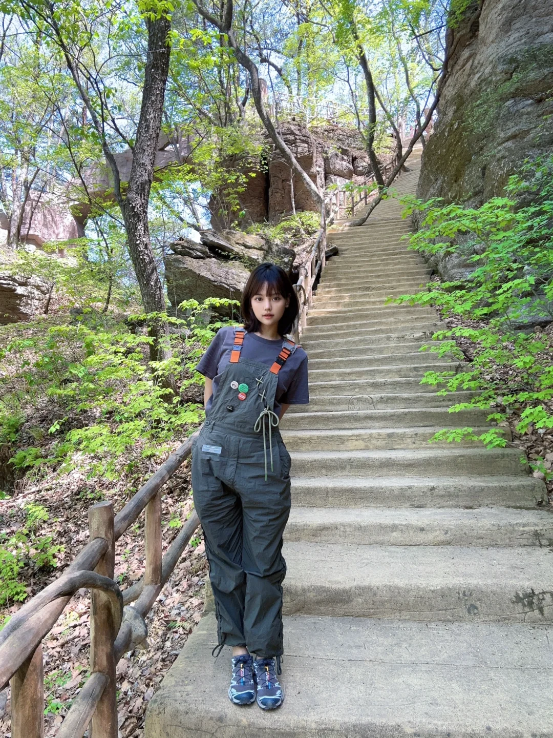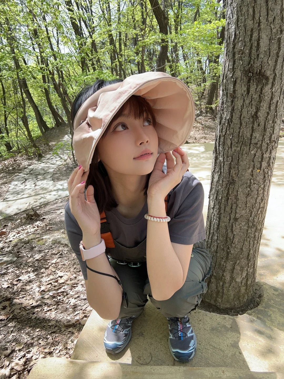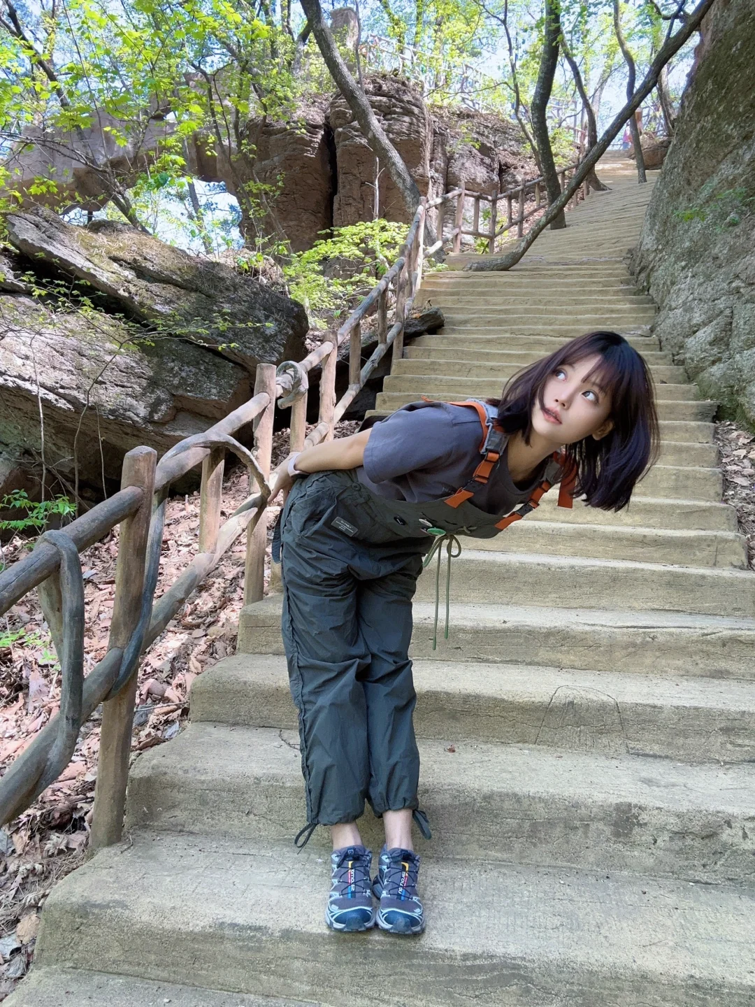 姐姐在溪边美得像幅自然画卷!黑色紧身衣勾勒出曼妙曲线,米色裤装衬得身姿挺拔,低丸