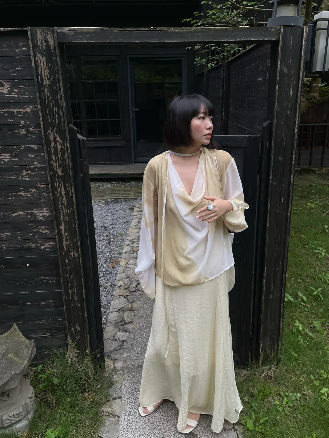 白衫是薄瓷的容器盛着心跳与呼吸绿裤是柔韧的藤缠裹着骨骼的倔强~柳丝拂