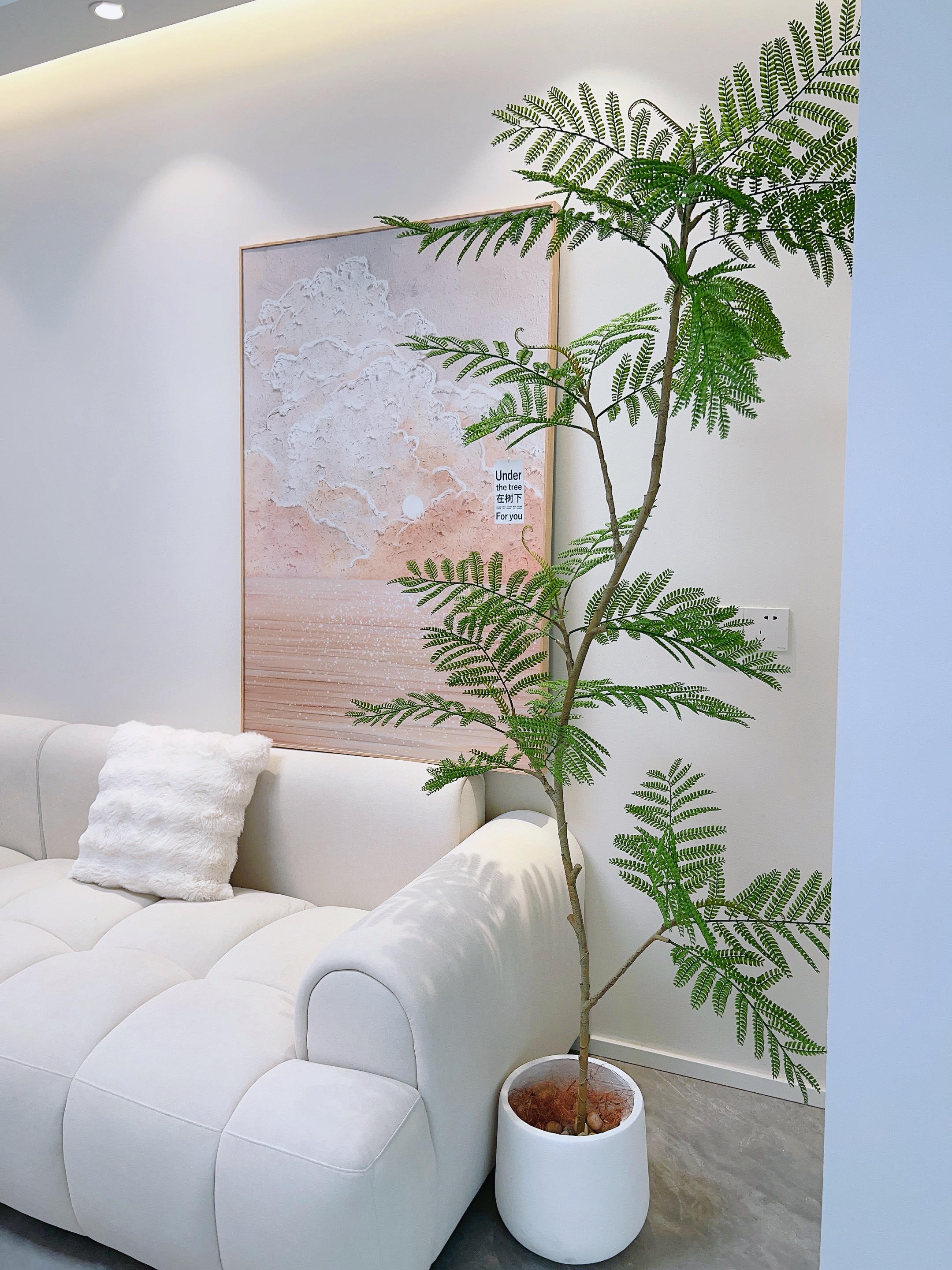 妈耶,这个绿植放在哪里都好有氛围感啊~ 家里大部分家具都是白色为主。 一直觉得家里缺一颗绿植,作为绿植杀手,养不活真的,于是买了个仿真的!🌴 这个绿植不论是放在阳台还是沙发旁,都很有氛围感! 顿时觉得家里多了一丝生机~ 我选的是1.8米的蓝花楹,树干和枝叶的颜色形状都做的很自然,还可以随意凹造型。 跟我一样养不活真的绿植的姐妹真的可以闭眼入!!!!绿植高级感绿植推荐室内植物推荐家居软装