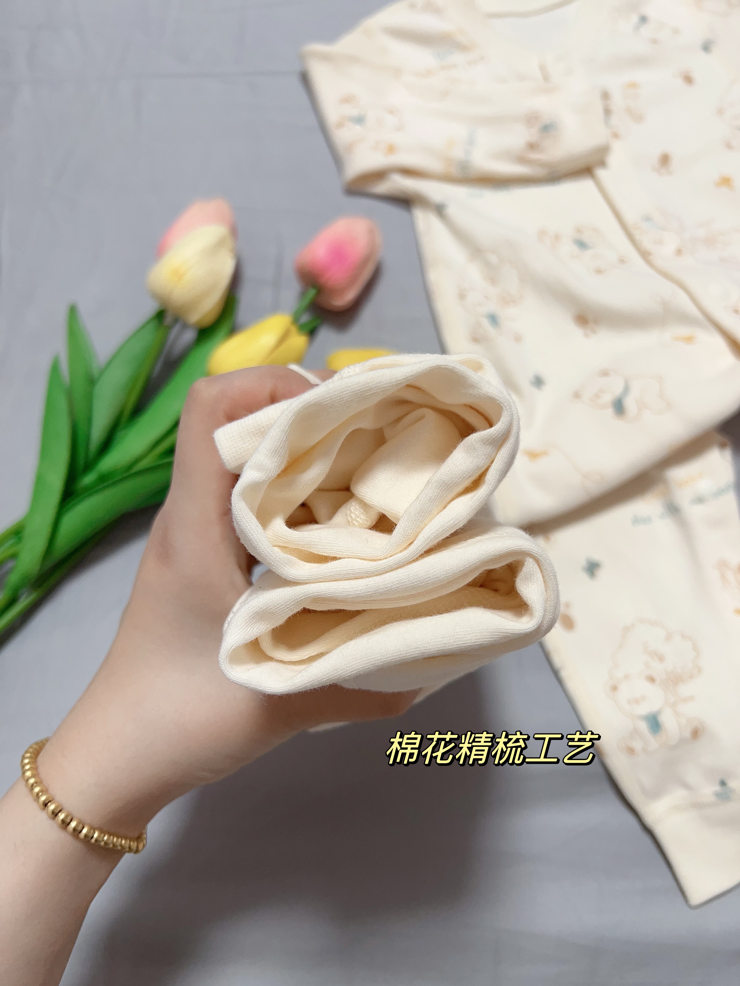🔅这款衣服是两件套,颜值真的很高,宝宝穿起来也非常可爱,我买的是两件小熊图案的印花,宝宝穿上奶呼呼的。