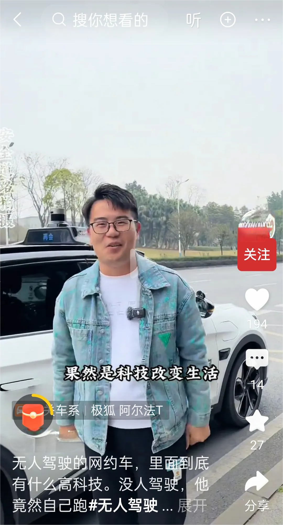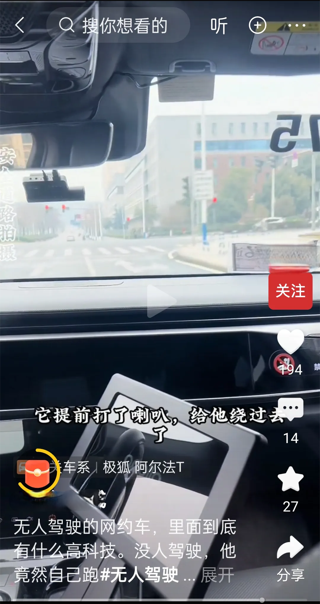 武汉街头出现了无人驾驶网约车,真的是高科技改变生活,输入后四位手机号就可以打开车门,直接坐上去,点击开始车就走了,一路上遇红灯会停,遇行人会礼让,会直接变道,会鸣喇叭,感觉太刺激了,科技真是好,以后出租车和网约车司机都下岗吧,回家抱孩子去吧,不用你们了。