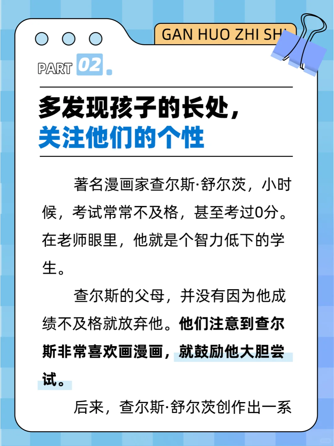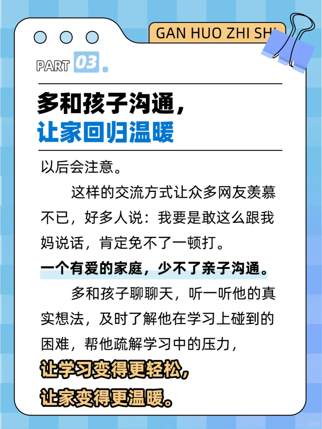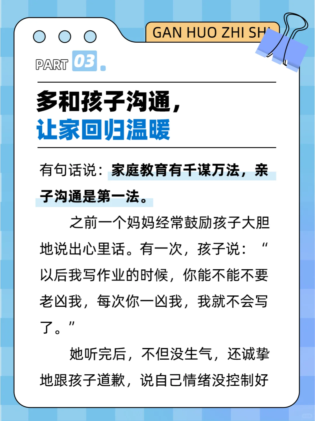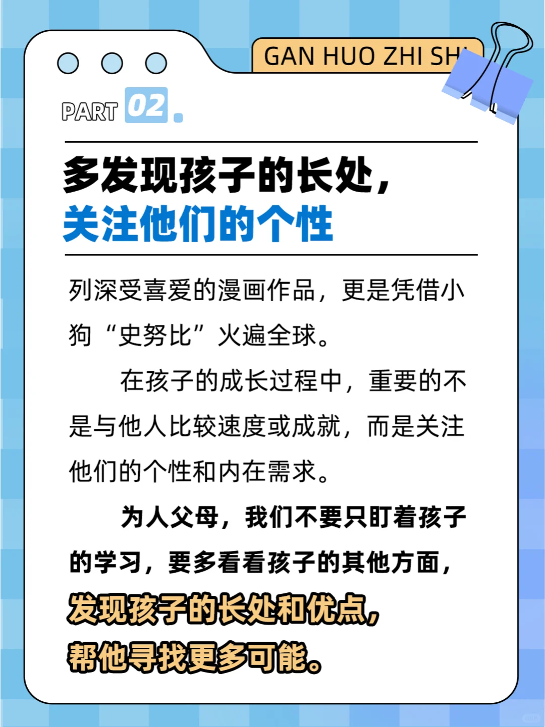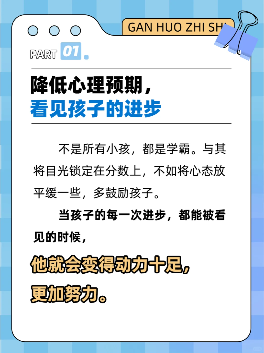 1️⃣降低心理预期,看见孩子的进步 👀 2️⃣多发现孩子的长处,关注他们的个性 💡 3️⃣多和孩子沟通,让家回归温暖 🏡💬