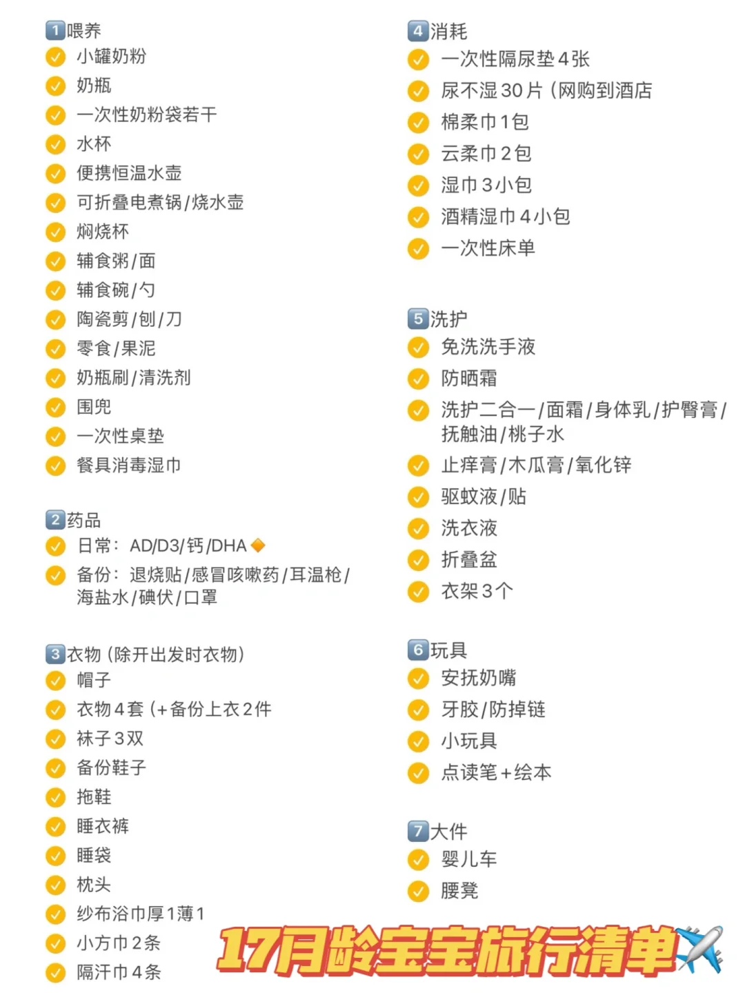 我进行了分类整理:衣物/喂养/日护/消耗/备份药物/玩具/大件