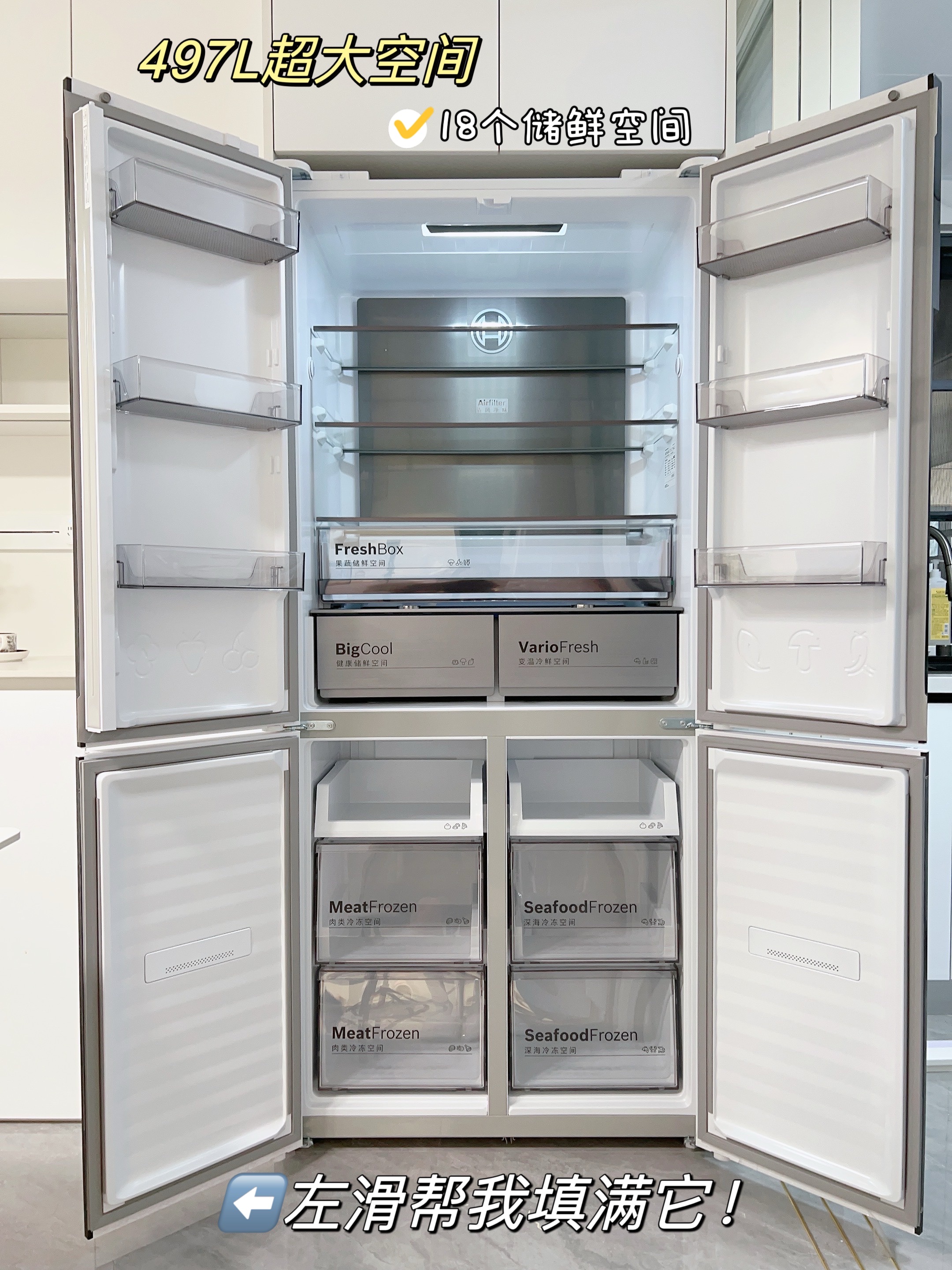 497升的超大容量,足以满足我家上有老下有小,五口之家的存储需求。内部的分区设计使得各种食物可以有序地摆放,保持整洁,每次打开冰箱门,都能感受到一种满足感。