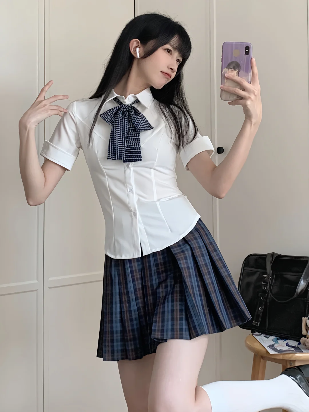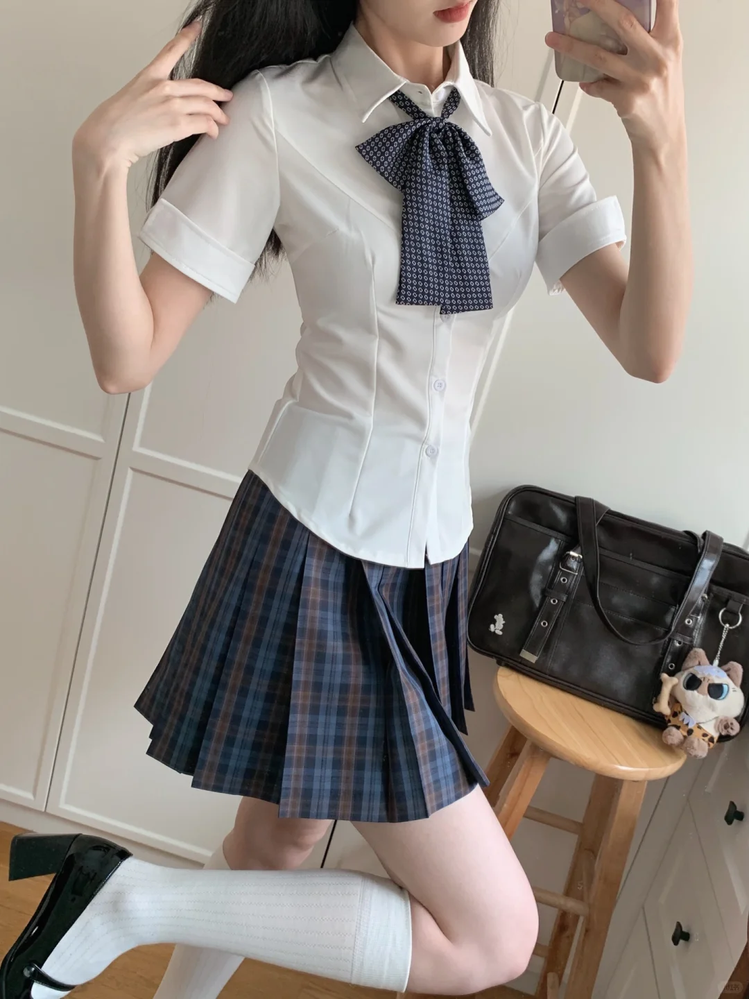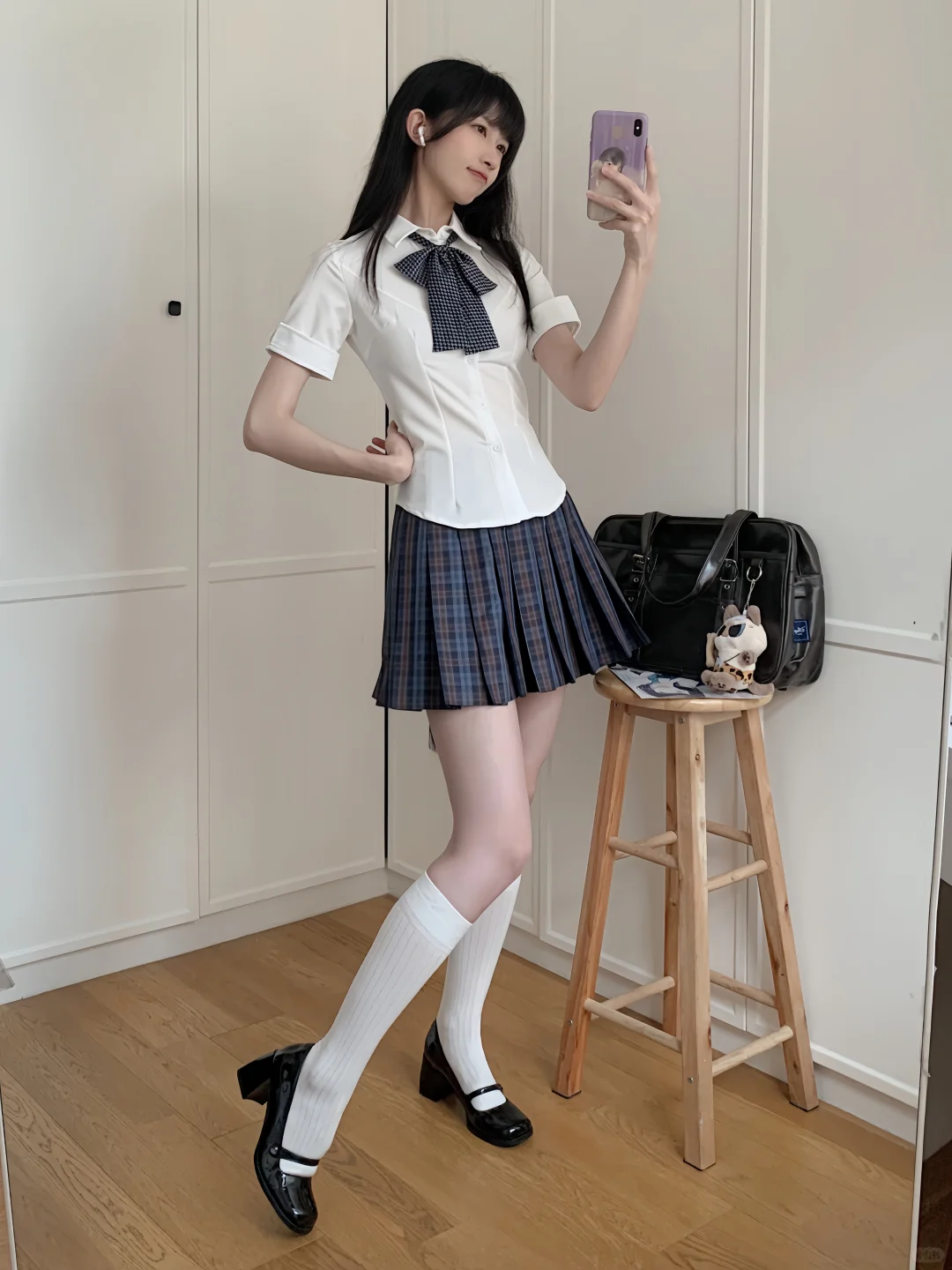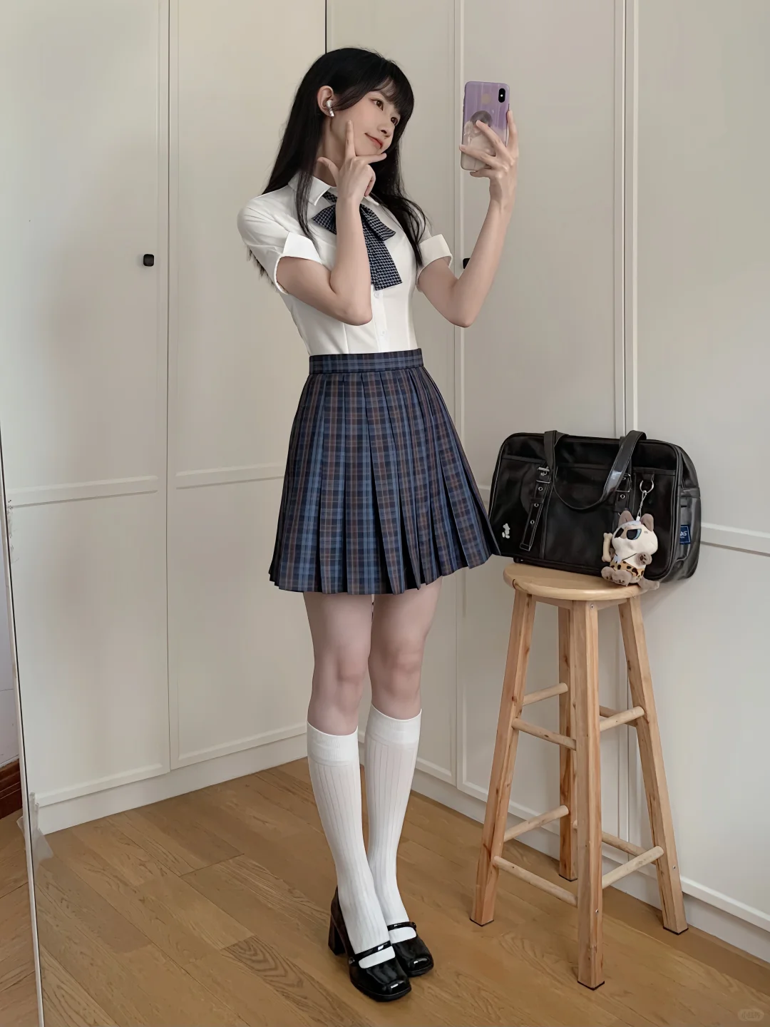 JK魅力不只在制服,长腿加分啊!剪发虽痛心,但颜值即正义,美腿依旧吸睛~学妹们,穿搭要有道哦