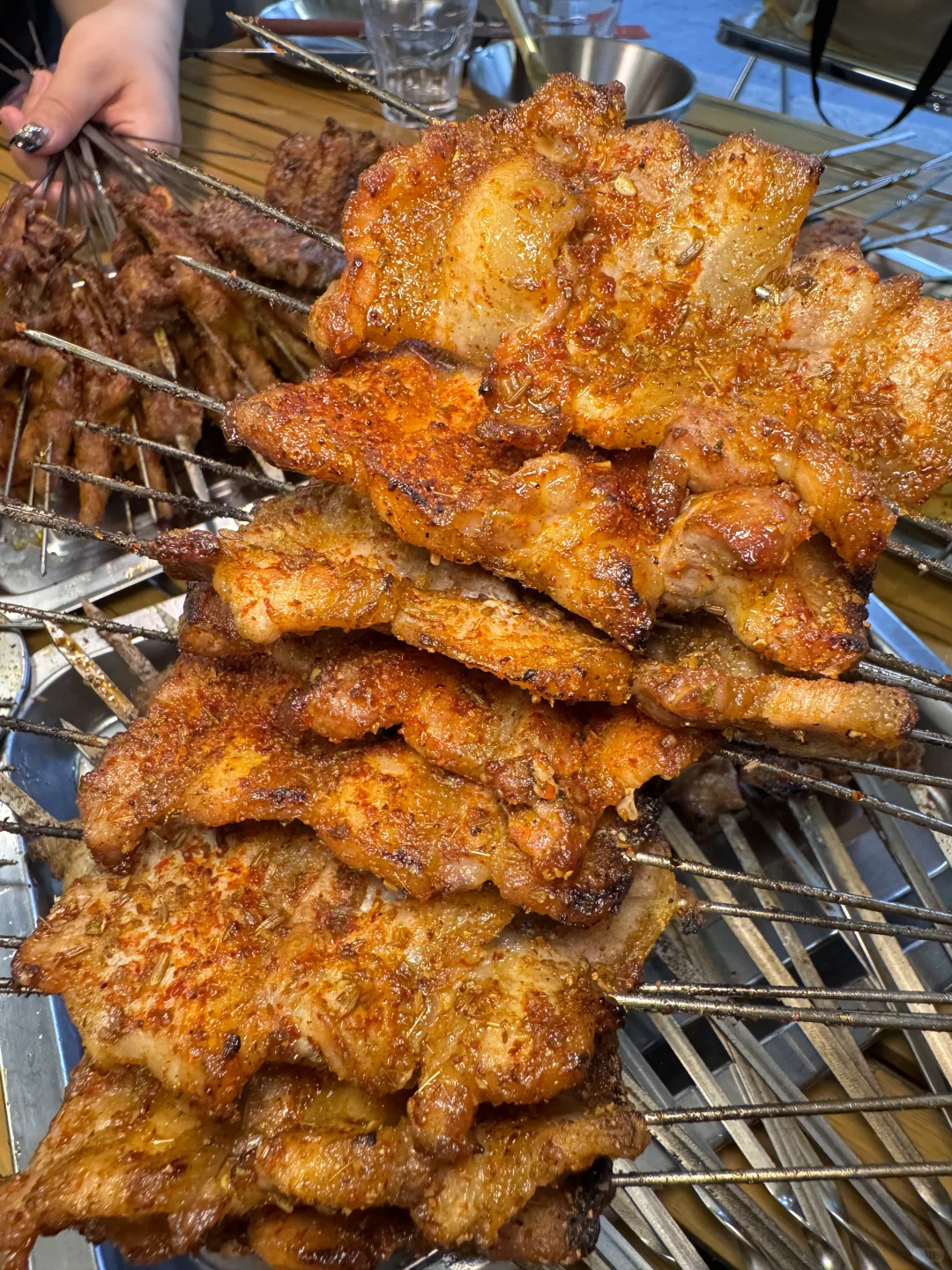 新街口新开的徐州烧烤,真的好好吃!!! 肉都是每日现穿的,用的是徐州小山羊,没有膻味 竟然还吃到了徐州羊肉白串,只用盐点缀,吃得出来真的新鲜口感好。