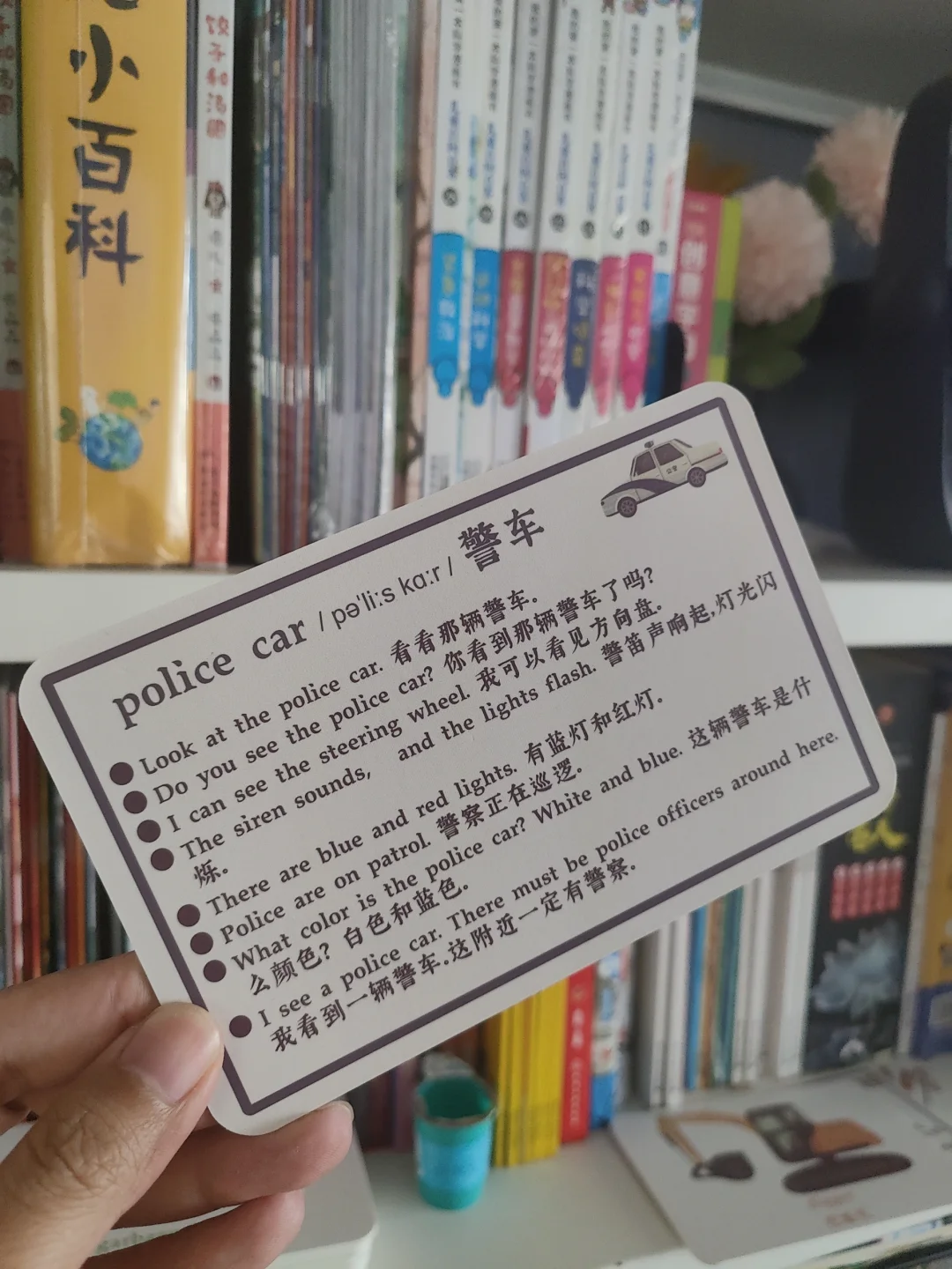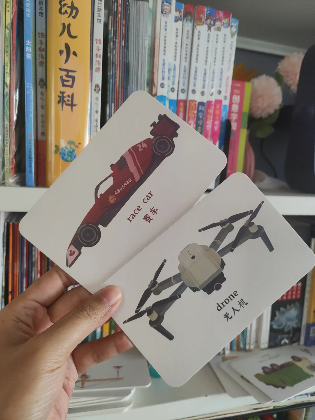 年度幸福感好物 阿布家的闪卡真的是绝绝子,继指令卡之后又入这套交通工具卡。一盒50张,还附赠小卡片,用赠品卡和大卡一起找配件小游戏,趣味十足呢! - 正面是交通工具车,背面是中英对照常用语,爸爸妈妈们再也不用担心不知道说什么了。 支持点读,哪里不会点哪里一套接一套的买,孩子值得拥有!
