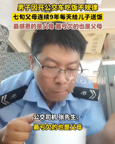看到此事,很多网友想到了自己父母,纷纷破防!有网友说,看到这一幕,感觉这位公交车司机好幸福,这么大年纪的老爸,不怕风吹日晒和天寒地冻,坚持每天给儿子送饭!可惜我爸爸已经不在了!
