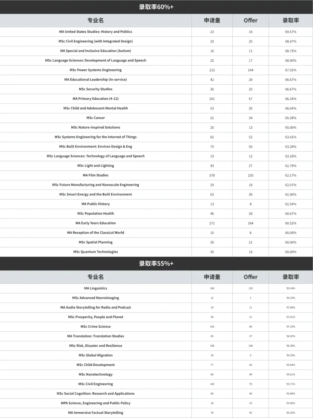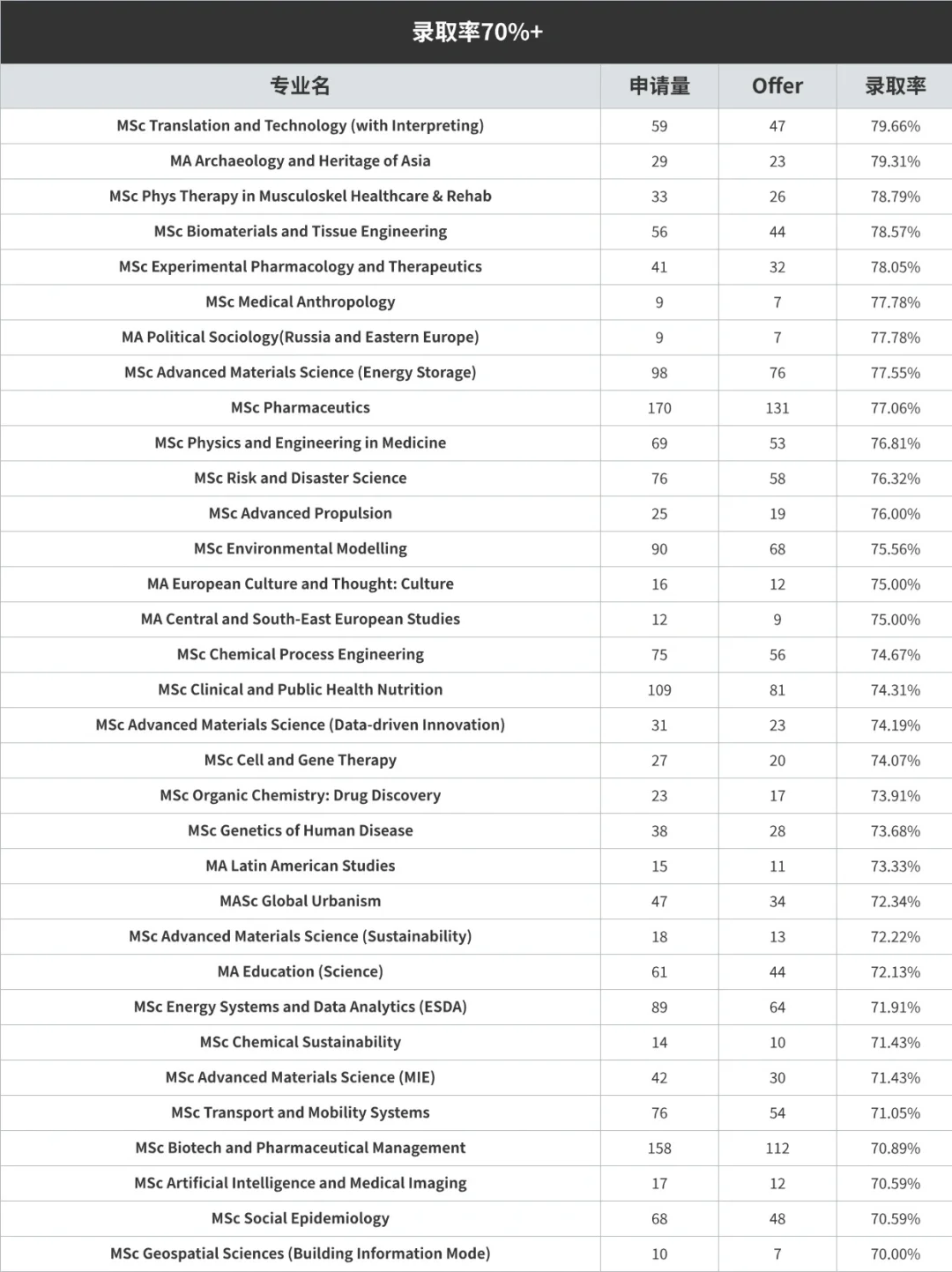 😲令人惊喜的是,UCL 有一些专业对中国学生的录取率竟然高达 100%!!还有一些专业达到 90%,更多的专业录取率为 80%、70%!!快来捡漏吧🎉!