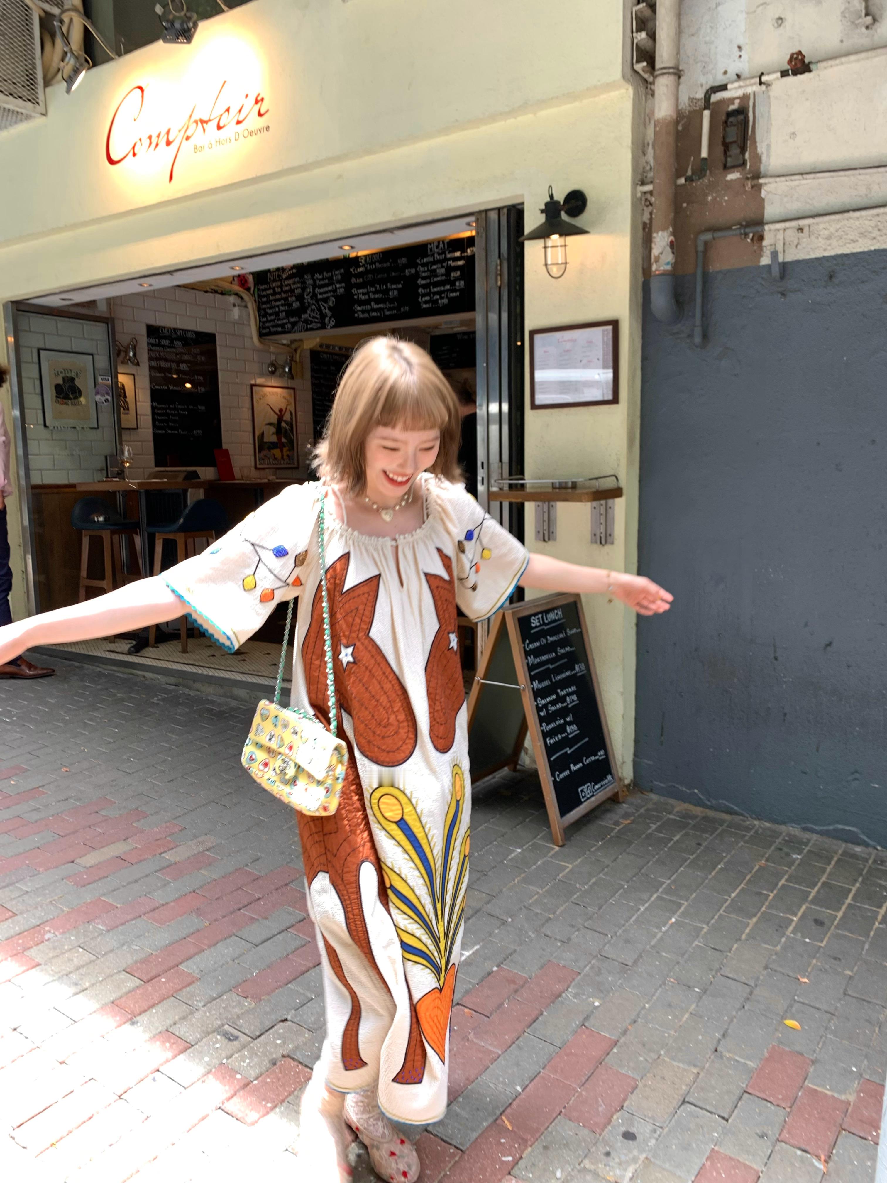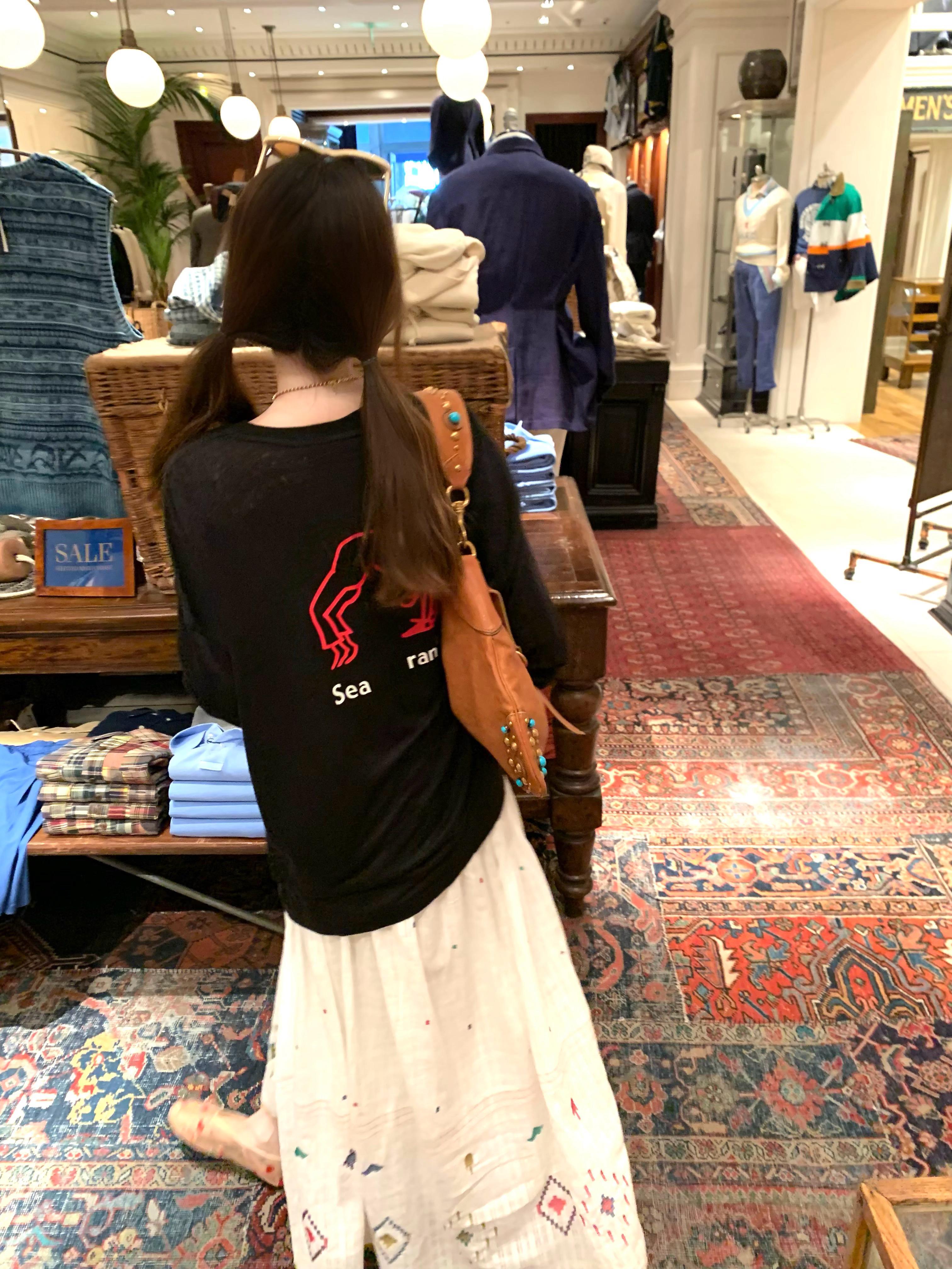 想发这件腊肠修勾一件t都是手工的 她领圈和袖边都是手工钉珠的 五颜六色的珠珠小花