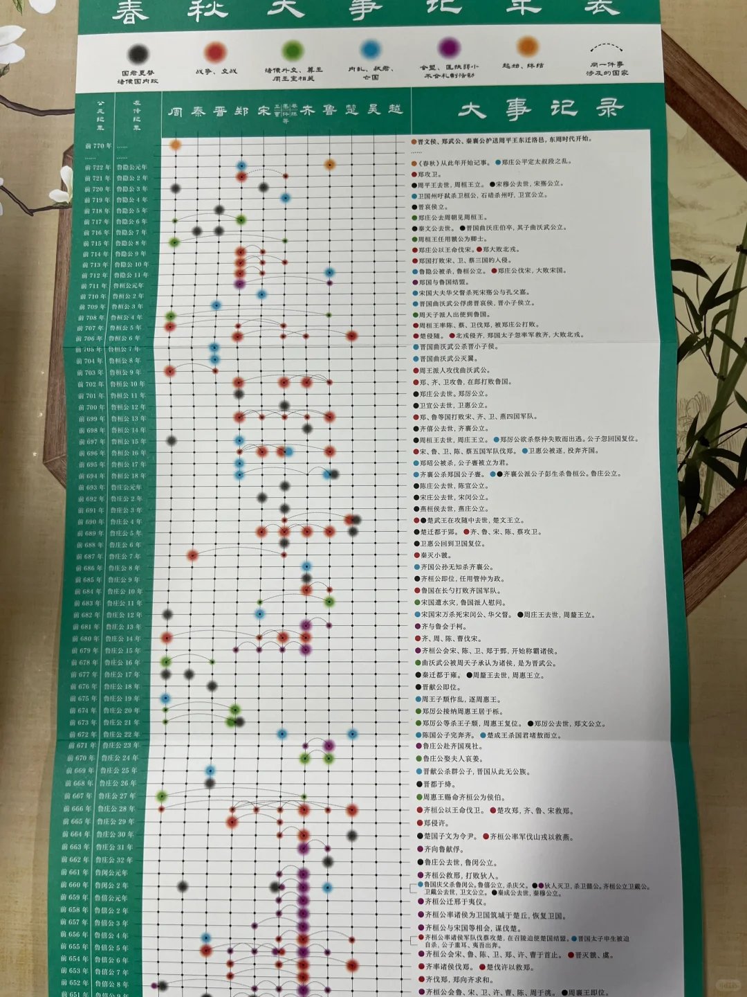 春秋初年,郑庄公采取远交近攻之策,联合齐、鲁,攻服宋、卫,挟制陈、蔡,击败北戎,称盛一时。随后,齐桓公“尊王攘夷”,成为春秋首霸。接下来,宋襄公、晋文公、秦穆公、楚庄王相继登场,最后以吴越争霸的落幕结束了春秋历史。