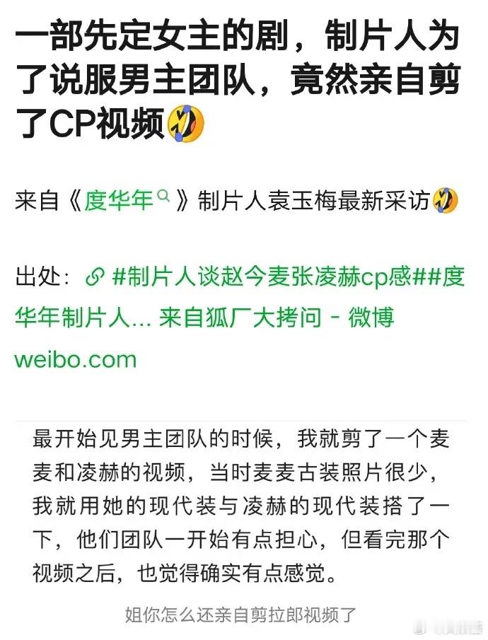原来度华年制片人为了说服张凌赫出演,竟然亲自剪了赵今麦张凌赫cp向视频。