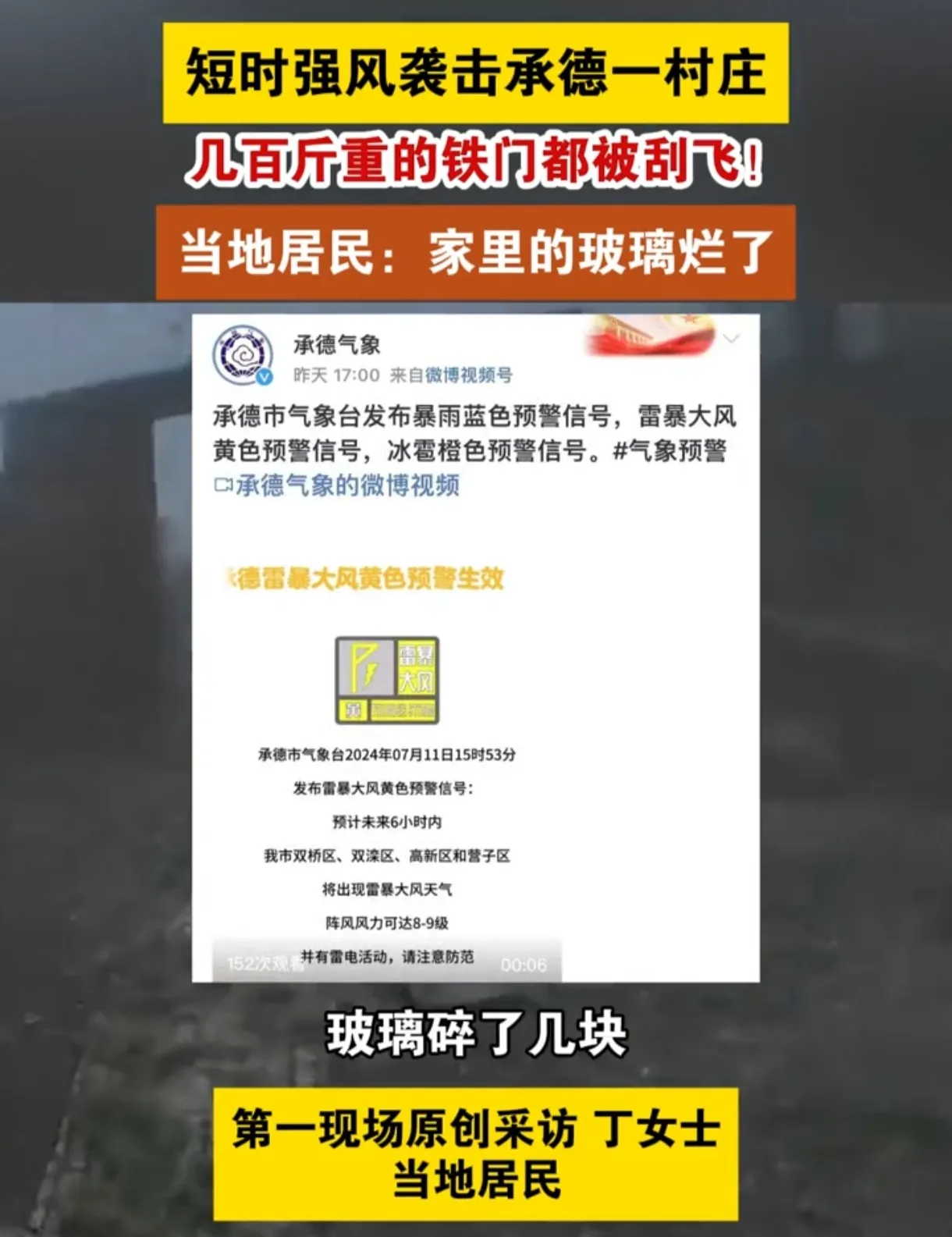 狂风突袭承德村,铁门竟被吹飞!