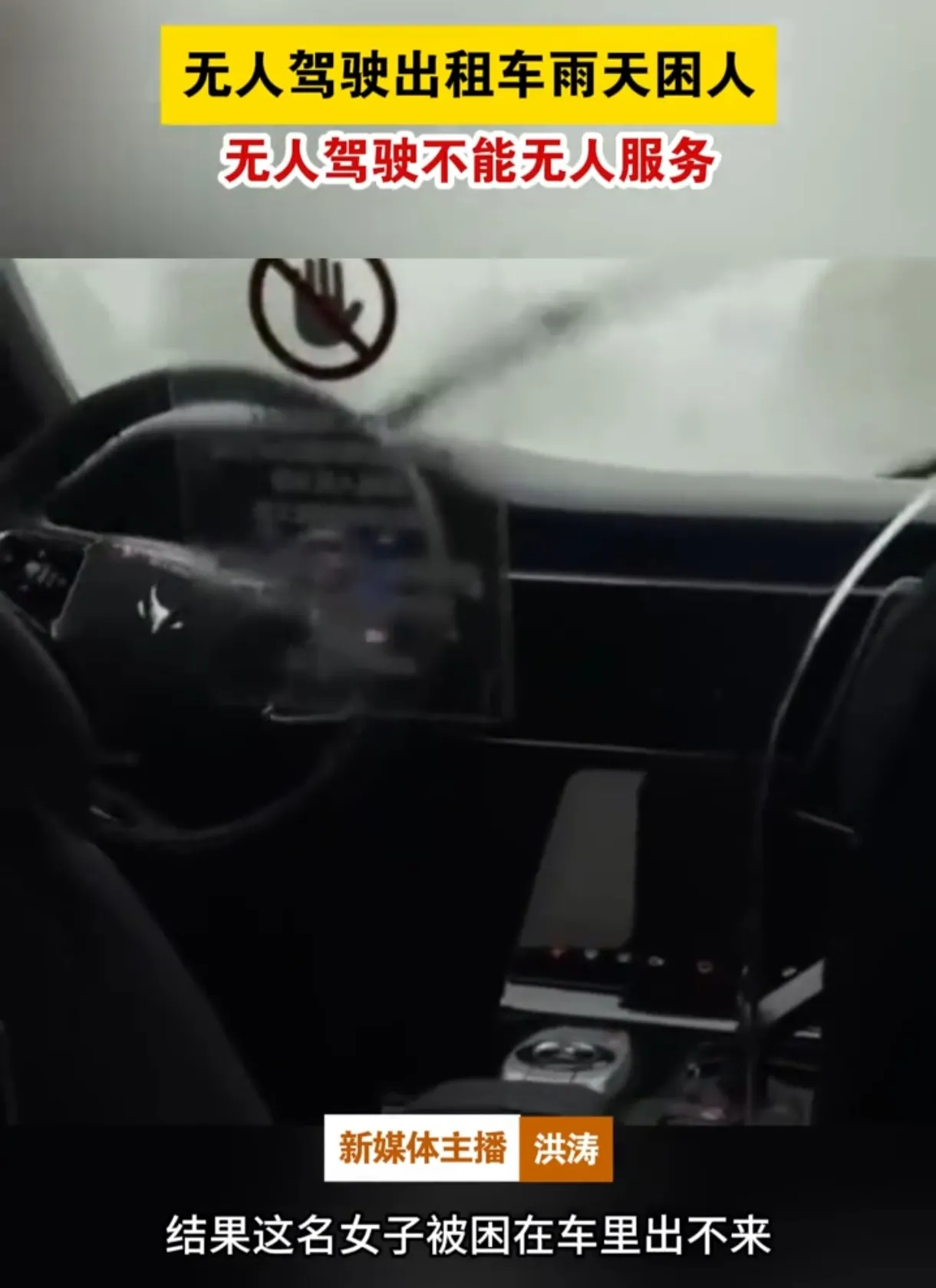 暴雨中无人驾驶出租车“罢工”,乘客被困一小时!