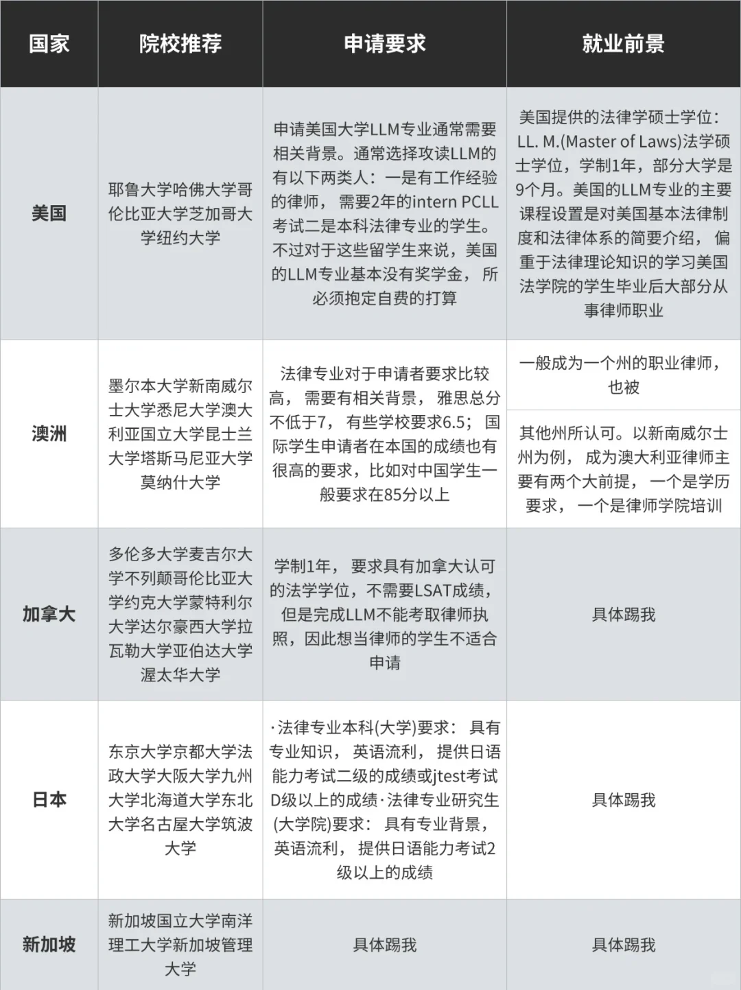 💡先来说说 LLM📚。它是法学硕士的简称,是一个为期一年(部分地区为两年)的深造课程。与中国的法学硕士学位类似,但也有不同。LLM 主要在英、美等普通法系国家和地区开设,属于普通法系法学教育体系中的硕士阶段。能申请 LLM 的,本科一般得是法学专业、法律硕士,或者是在职律师、法务人员等。总之,没有法学背景是不能申请 LLM 的哦❌。