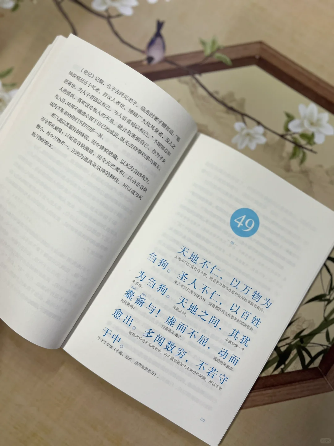 如果先秦经典只能读一本,我会毫不犹豫选择《道德经》。这本饱含古人智慧的传世经典,一直是我的人生之书。当迷茫、浮躁、焦虑不安的时候,它告诉我“夫唯不争,故天下莫能与之争”。不管世界喧闹,坚持自己的节奏,与世无争。不争,就是最大的争。