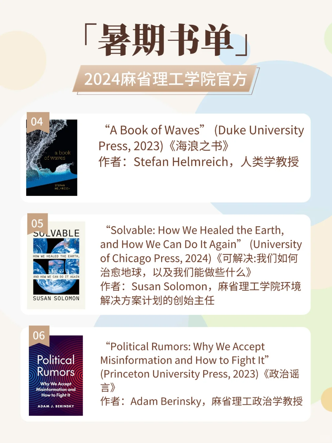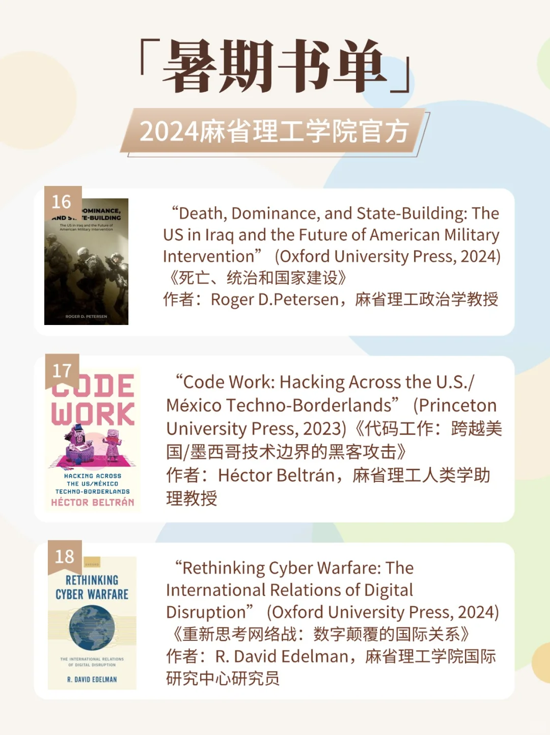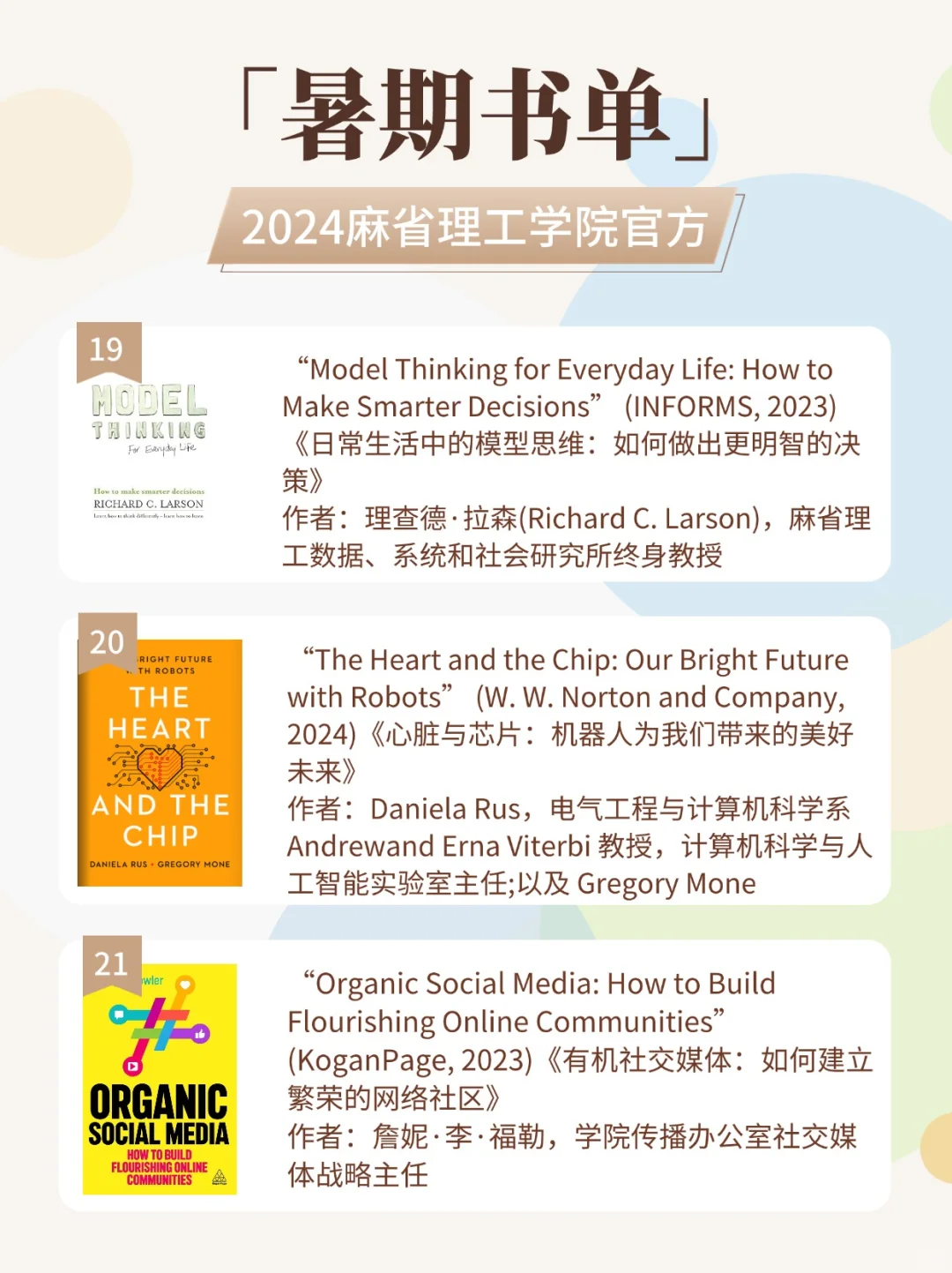 今年MIT共出具了超过50多本的推荐书单,大家可以根据自己感兴趣的话题进行选择。