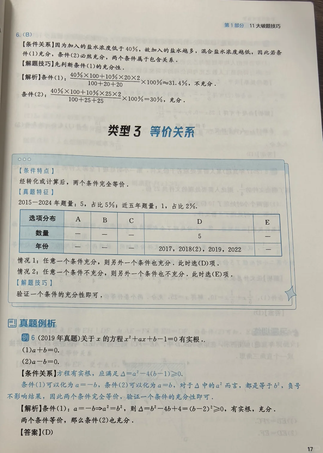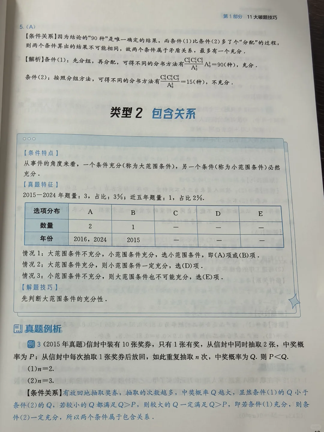 这本书除了一些真题外,其他题目都是原创题。 题目符合最近几年真题的命题特征,例如最近几年经常考的“能确定”“确定最值”等等类型。 条件充分性判断有问题的同学可以试一下。