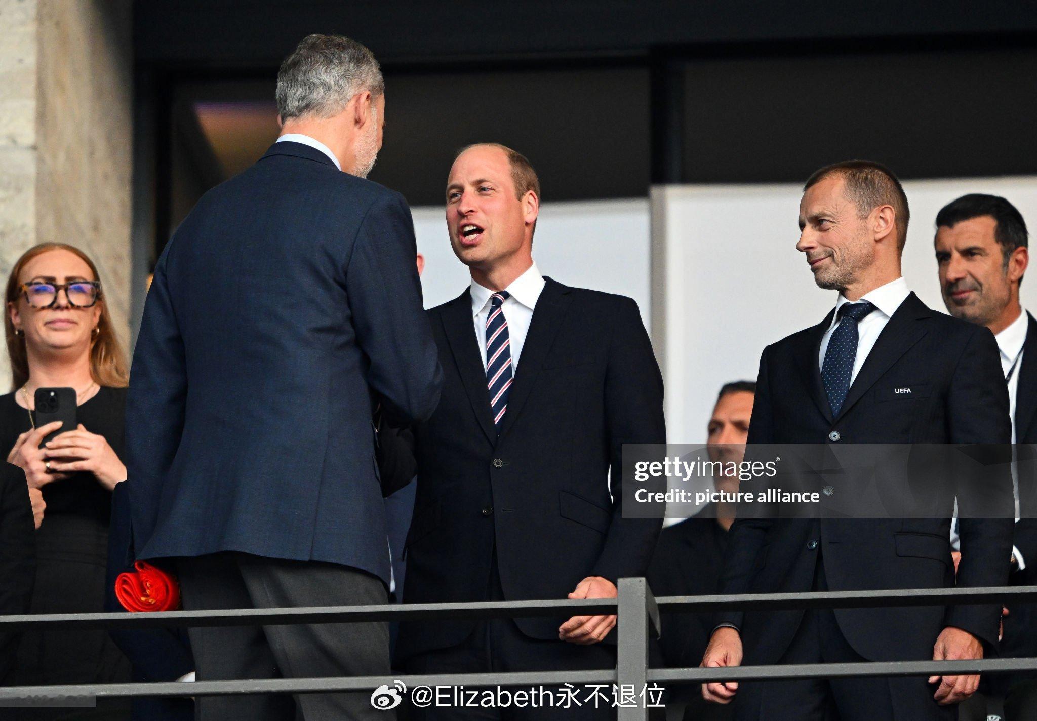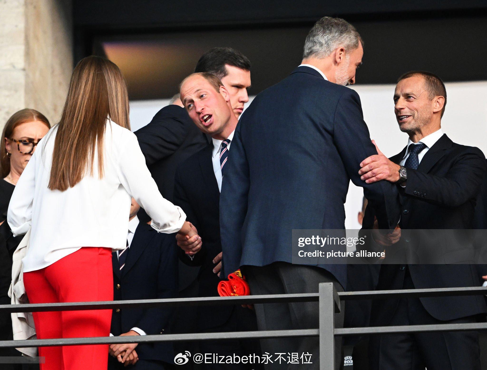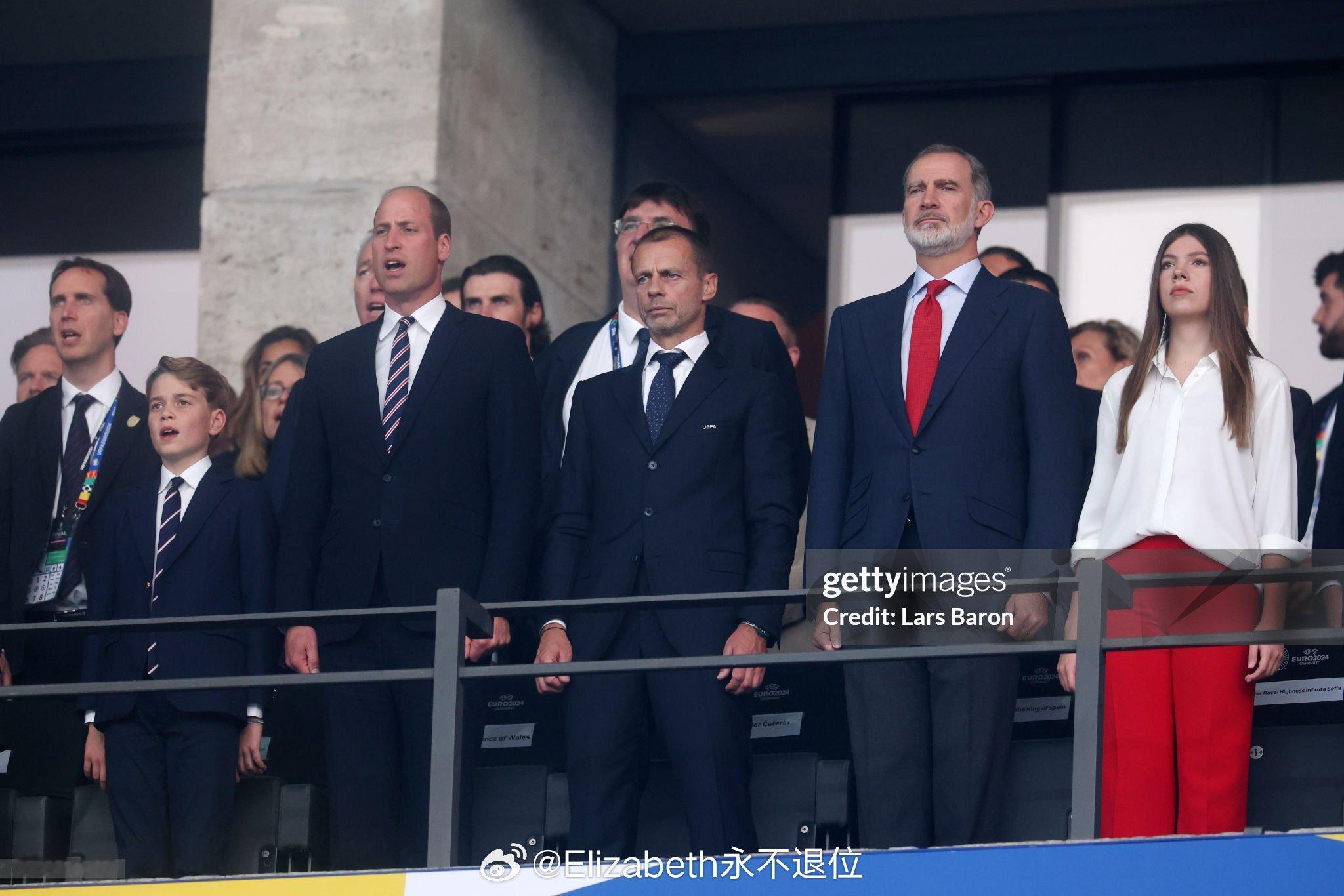 #新闻#7月14日,威尔士亲王和乔治王子出席2024年欧洲杯决赛英格兰与西班牙的比赛,并与同场出席的西班牙国王费利佩六世和索菲亚公主会面。