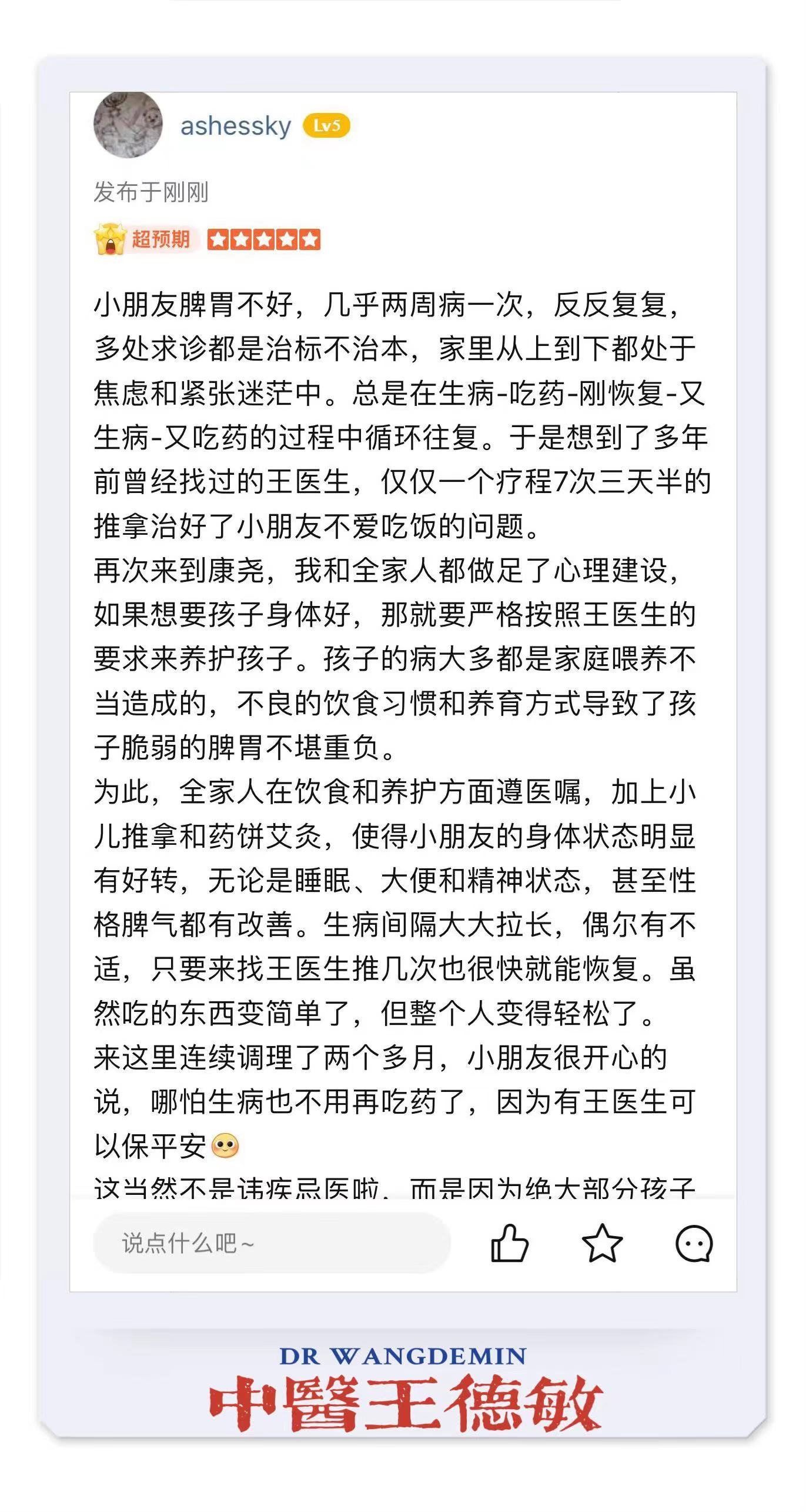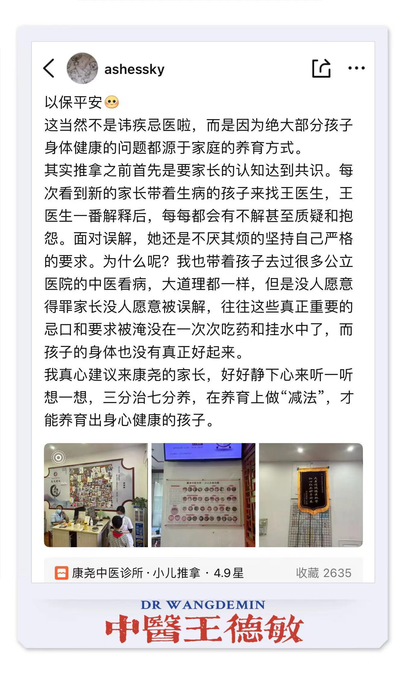 请记住:小儿推拿是个没有回头客的事情。孩子体质好了,生病越来越少,即使生病,病程越来越短,好的越来越快!