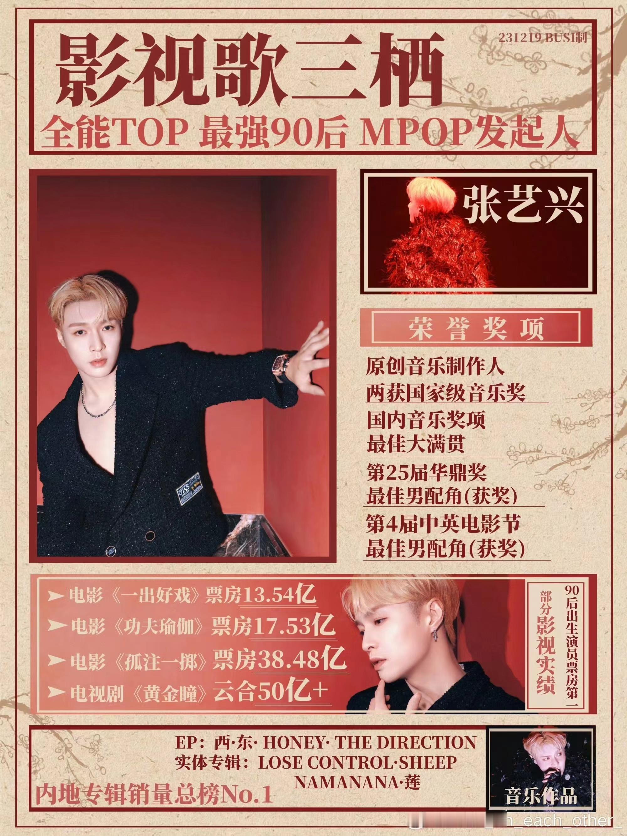 来看#张艺兴#这么多年实绩,长红十二年的90top生,爱豆歌手演员全方位发展,路好像越走越宽了。