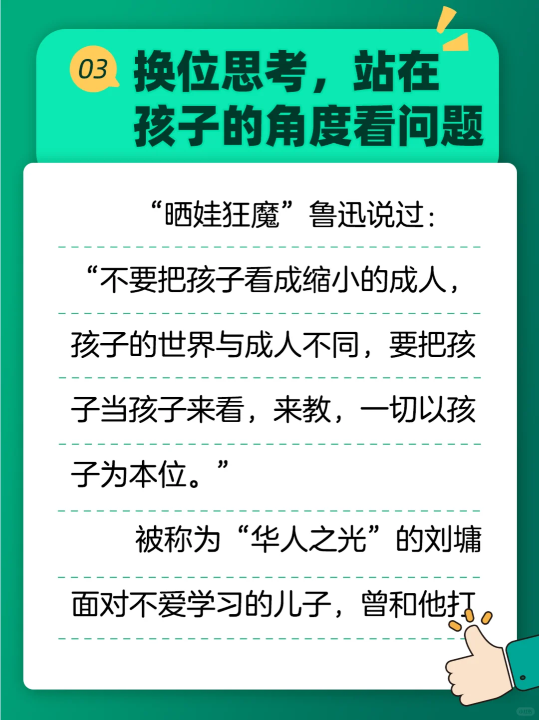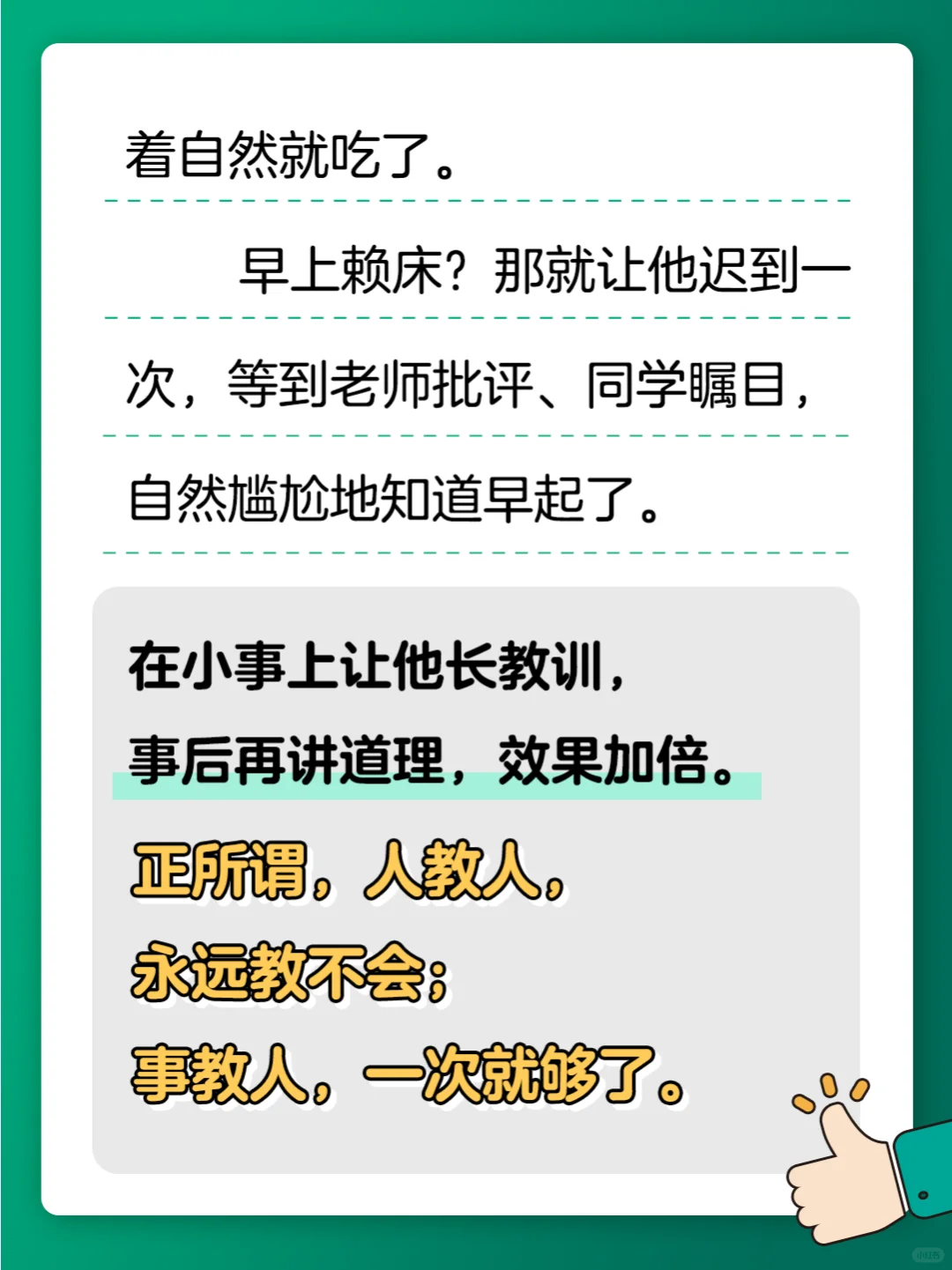 1️⃣以身作则,便是最好的教育👨🏫 2️⃣撞撞南墙,才能更好地明白道理💡 3️⃣换位思考,站在孩子的角度看问题👀