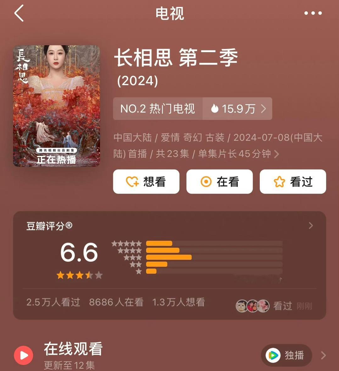 长相思2豆瓣开分6.6 3万人打分 怎么说?