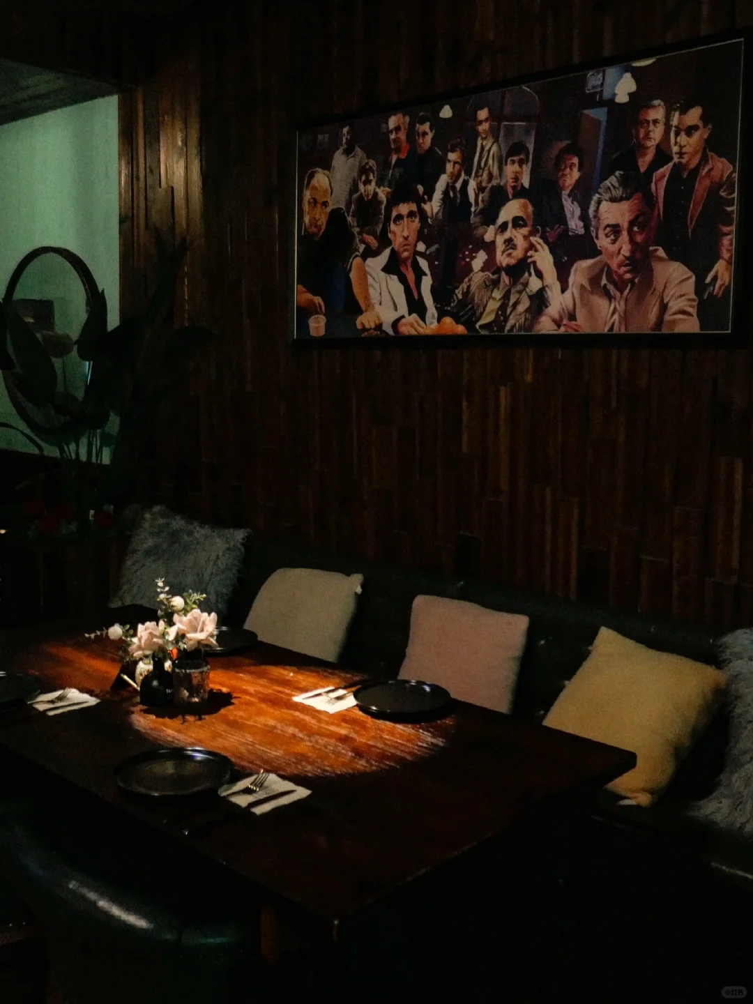 这家小馆子,复古风满满,虽不大却超有情调,约会圣地啊!战斧牛排配菠萝芝士,简直创意满分~下次带我对象来试试!🎉🍔